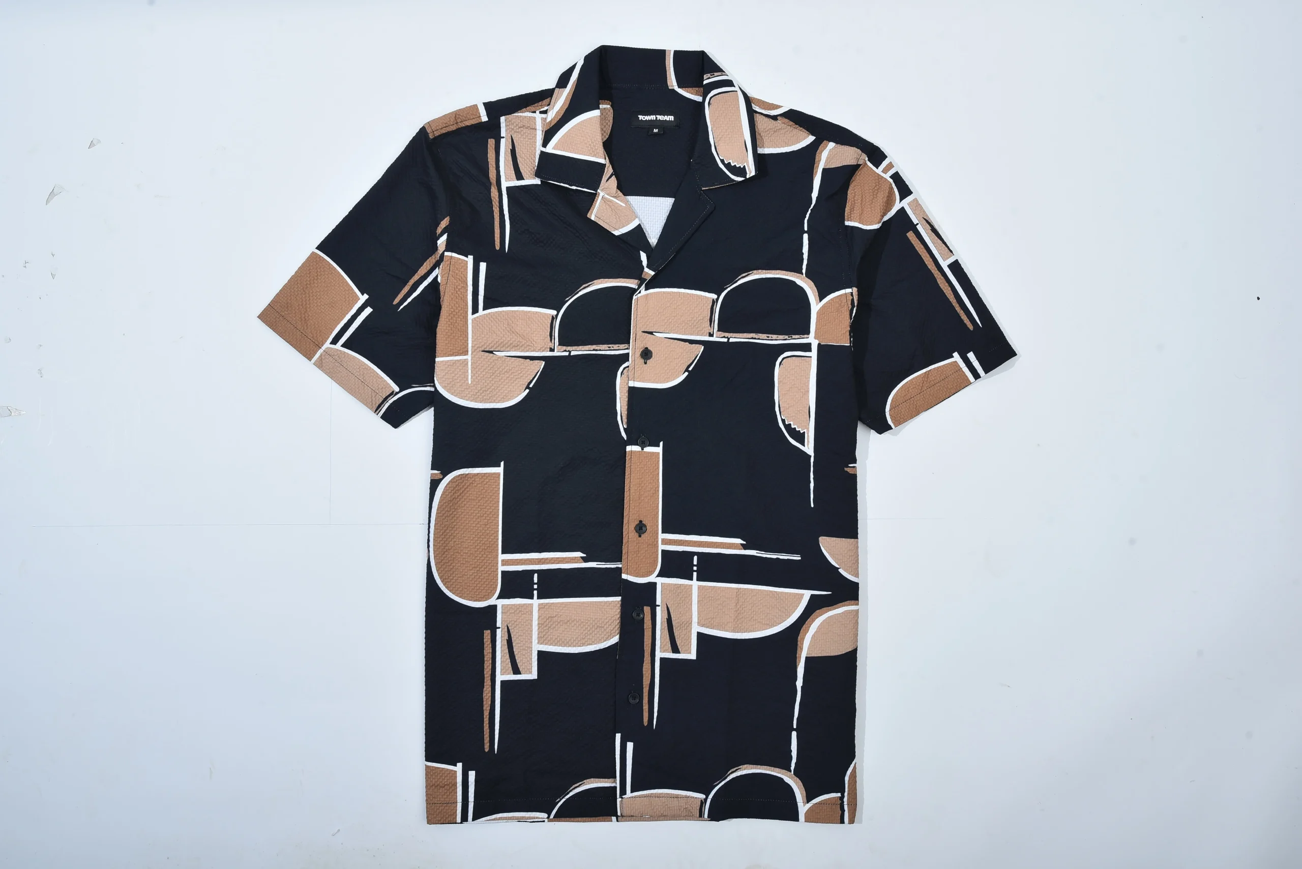 Cette chemise à manches courtes pour homme présente un design géométrique audacieux, avec des motifs abstraits en couleurs marron et noir. Conçue avec un tissu léger et respirant, cette chemise est idéale pour les journées chaudes et les occasions décontractées. Son style unique et moderne permet de l’associer facilement avec des pantalons ou des shorts pour un look à la fois élégant et décontracté. Parfaite pour les sorties estivales ou les occasions informelles, cette chemise sera un incontournable de votre garde-robe.