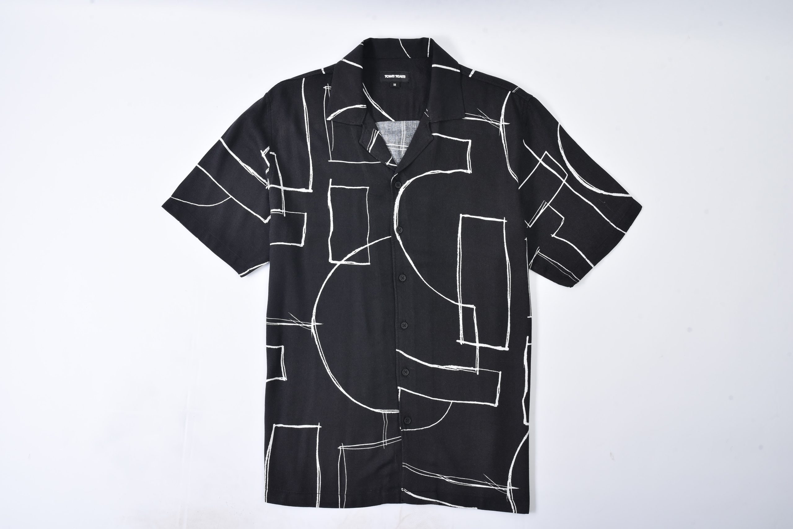 Cette chemise à manches courtes pour homme présente un design géométrique audacieux avec des motifs en lignes blanches sur fond noir, offrant un look à la fois contemporain et unique. Elle est fabriquée dans un tissu léger et confortable, parfait pour les journées chaudes ou les occasions décontractées. Que ce soit pour un déjeuner informel ou une soirée décontractée, cette chemise ajoutera une touche de style distinctif à votre garde-robe. Sa coupe moderne et son design élégant en font un choix parfait pour ceux qui recherchent un look tendance et confortable.