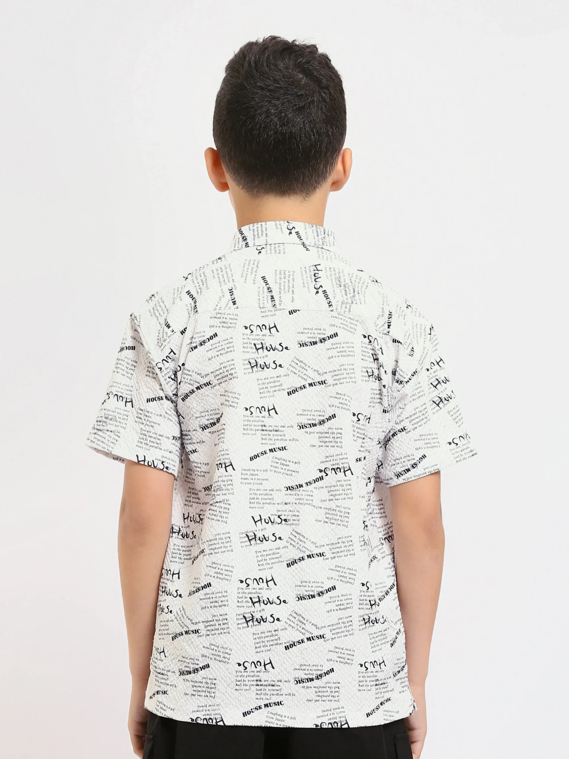 Cette chemise pour enfant de couleur blanche se distingue par son imprimé tendance HOUSE MUSIC, apportant une touche moderne et originale aux tenues du quotidien. Confortable et agréable à porter, elle est idéale pour accompagner les enfants dans leurs activités journalières.