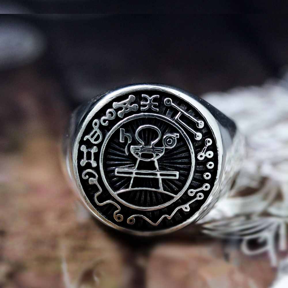 Cette bague, ornée d’un symbole de géométrie sacrée représenté par une étoile à six branches composée de deux triangles superposés, incarne le Sceau de Salomon. On lui attribue des vertus spirituelles et magiques. Elle symbolise à la fois le microcosme et le macrocosme. Cette bague est idéale pour apporter une touche d’originalité et un côté mystique à votre look. Son design en noir et blanc est très tendance et s’accorde parfaitement avec toutes les tenues. Sa forme parfaitement polie confère à cette bague une élégance certaine, la rendant agréable à porter. Si cette chevalière runique vous attire, vous serez ravi…