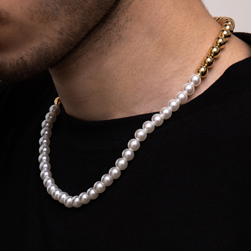 Collier de perle blanche homme