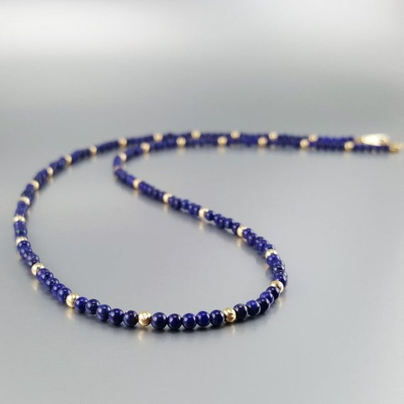 Pour entretenir ce collier, nettoyez-le avec un chiffon doux et sec après chaque utilisation. Évitez également le contact prolongé avec l’eau et les produits chimiques pour préserver la couleur intense du lapis lazuli.