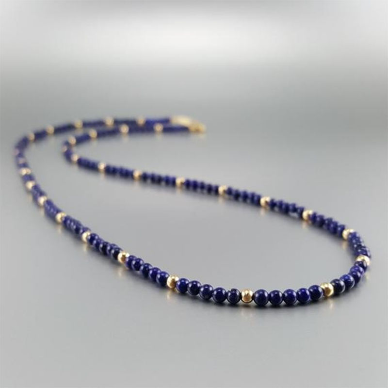 Ce collier fin en perles sera très apprécié par les hommes qui aiment les accessoires discrets et de qualité. La délicatesse de ce bijou révèle toute sa beauté et son charme indéniable. Ce collier, composé de pierres semi-précieuses naturelles, allie style et vertus grâce aux pierres de lapis-lazuli, d’un magnifique bleu, et aux petites perles en métal doré.
