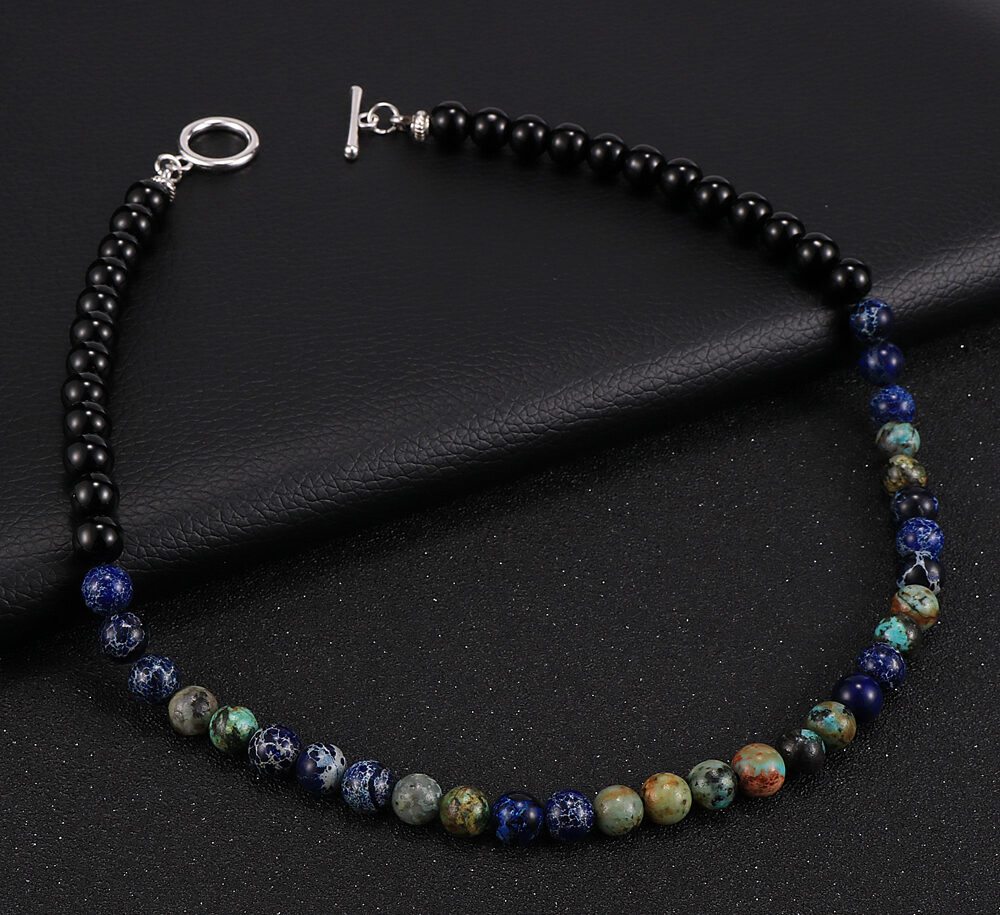 Disponible en longueurs de 45 cm et 50 cm, ce collier s’ajuste facilement à votre morphologie et à votre style personnel. Que vous souhaitiez le porter seul pour une allure minimaliste ou l’associer à d’autres accessoires, il rehausse toute tenue. Sa flexibilité en fait un ajout idéal à votre collection de bijoux en perles pour homme.