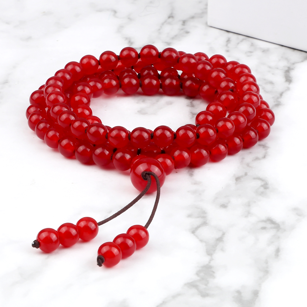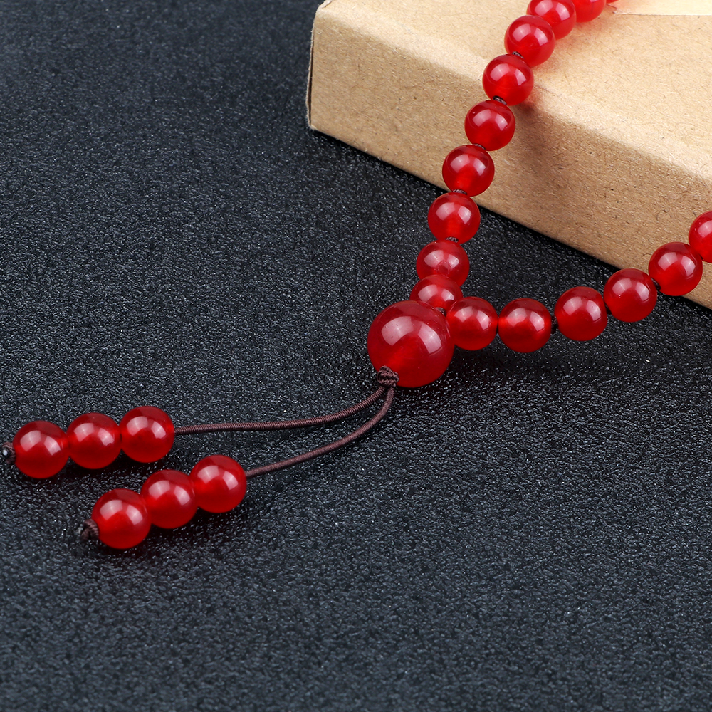 Ce collier en perles rouges est le parfait allié de votre quotidien comme lors de vos moments de relaxation. Les perles lissées facilitent la récitation des mantras, ajoutant ainsi un aspect tactile qui enrichira votre expérience spirituelle. Son système élastique garantit un ajustement idéal, vous permettant de le porter confortablement en toute occasion, que ce soit pour une sortie décontractée ou une séance de méditation. Complétez votre tenue avec un collier en perles noires qui saura vous séduire également.