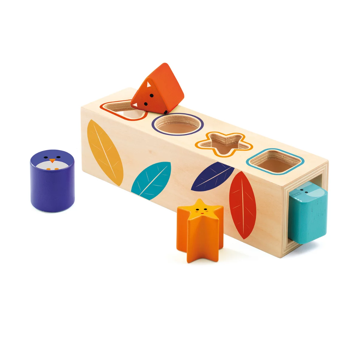 Contenu : 1 boîte à forme et 4 formes en bois.