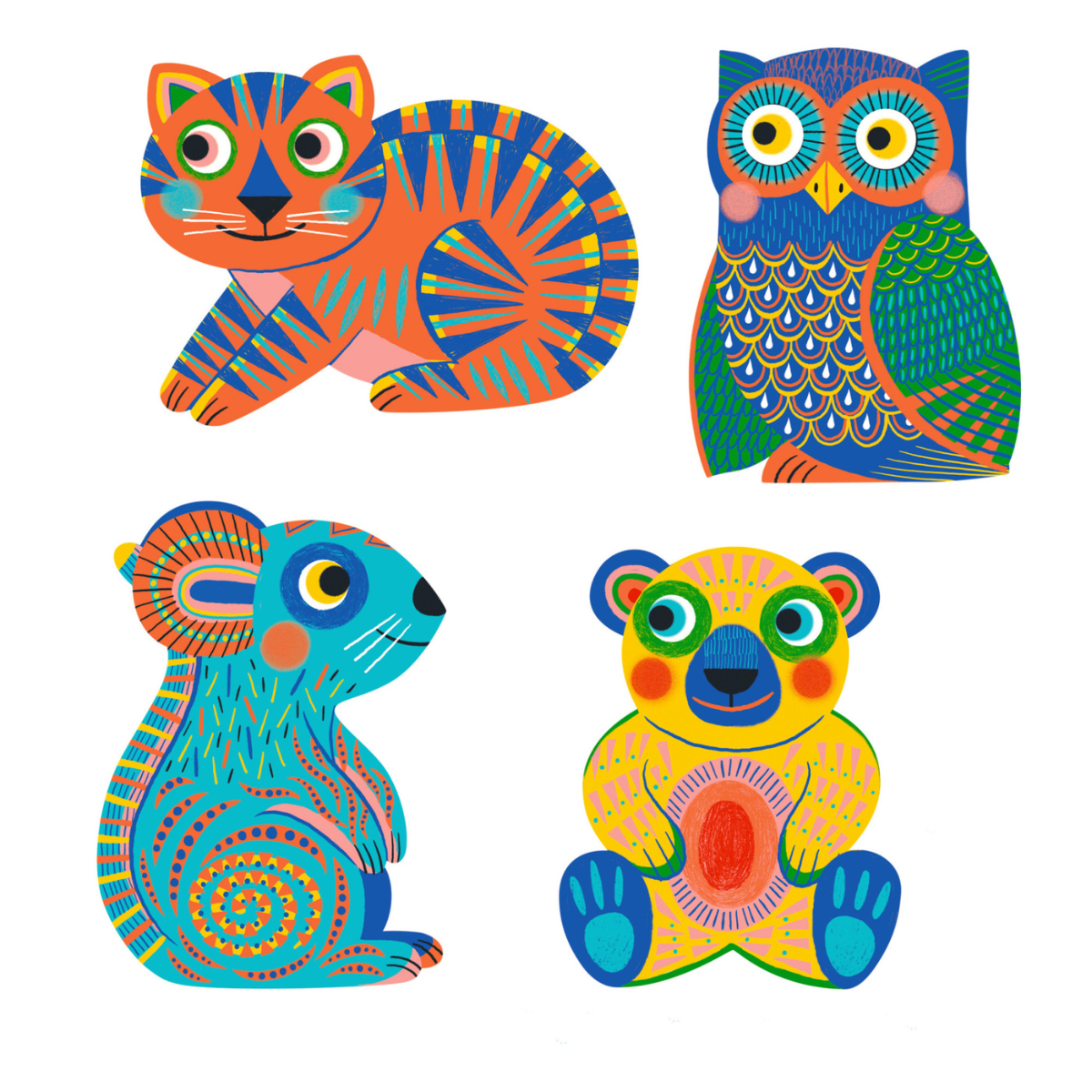 L’enfant colorie les animaux à l’aide du crayon à eau les parties blanches pour découvrir ce qui se cache.