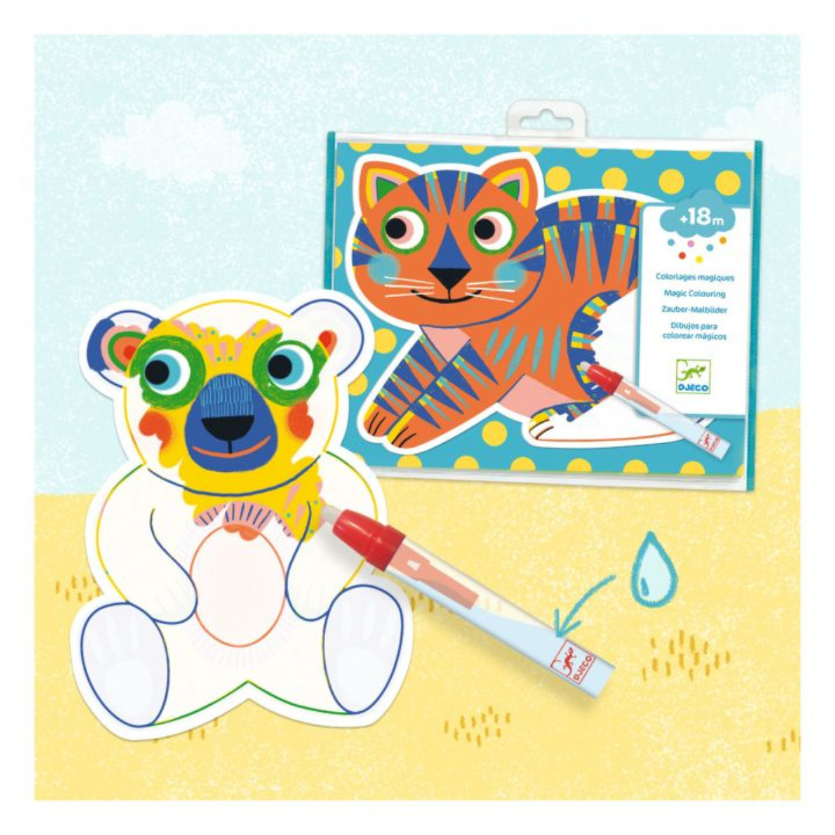 Coloriage magique Animalo-Ma consiste à remplir un stylo d’eau et de colorier les dessins. L’enfant peut recommencer à l’infini.