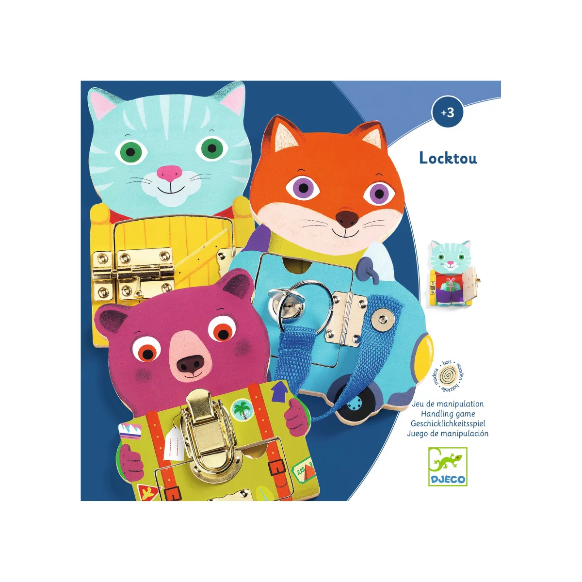 Un jeu de manipulation de trois mignons petits animaux en bois où l’enfant s’entraîne sur chacun d’entre eux à ouvrir et fermer des serrures. Dès 3 ans, Locktou accompagne les premiers apprentissages.