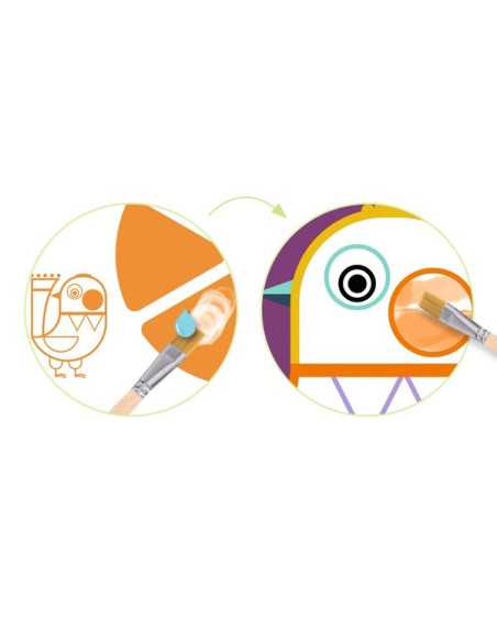 Initie les enfants de 3 à 6 ans à la peinture avec le coffret Les Joufflus de Djeco ! Ce kit complet contient 4 tableaux à peindre, 4 palettes à encre imprimée, un pinceau en bois et un livret explicatif pour guider les petits artistes. Les grandes zones protégées par un vernis limitent les débordements tout en laissant libre cours à la créativité. Simple, pratique et ludique, ce coffret garantit des œuvres réussies à chaque fois !