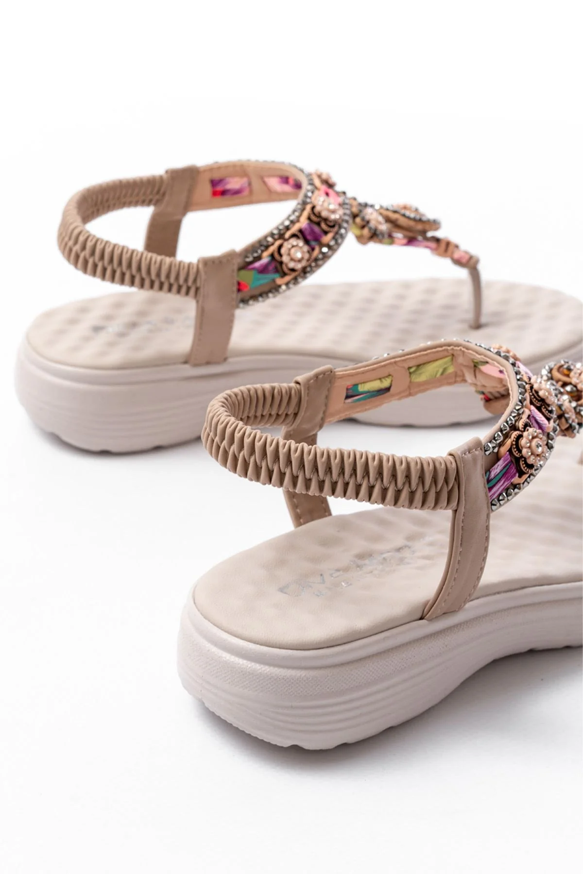 dm-609 Sandales femme à talon avec élastique arrière et détails en pierres