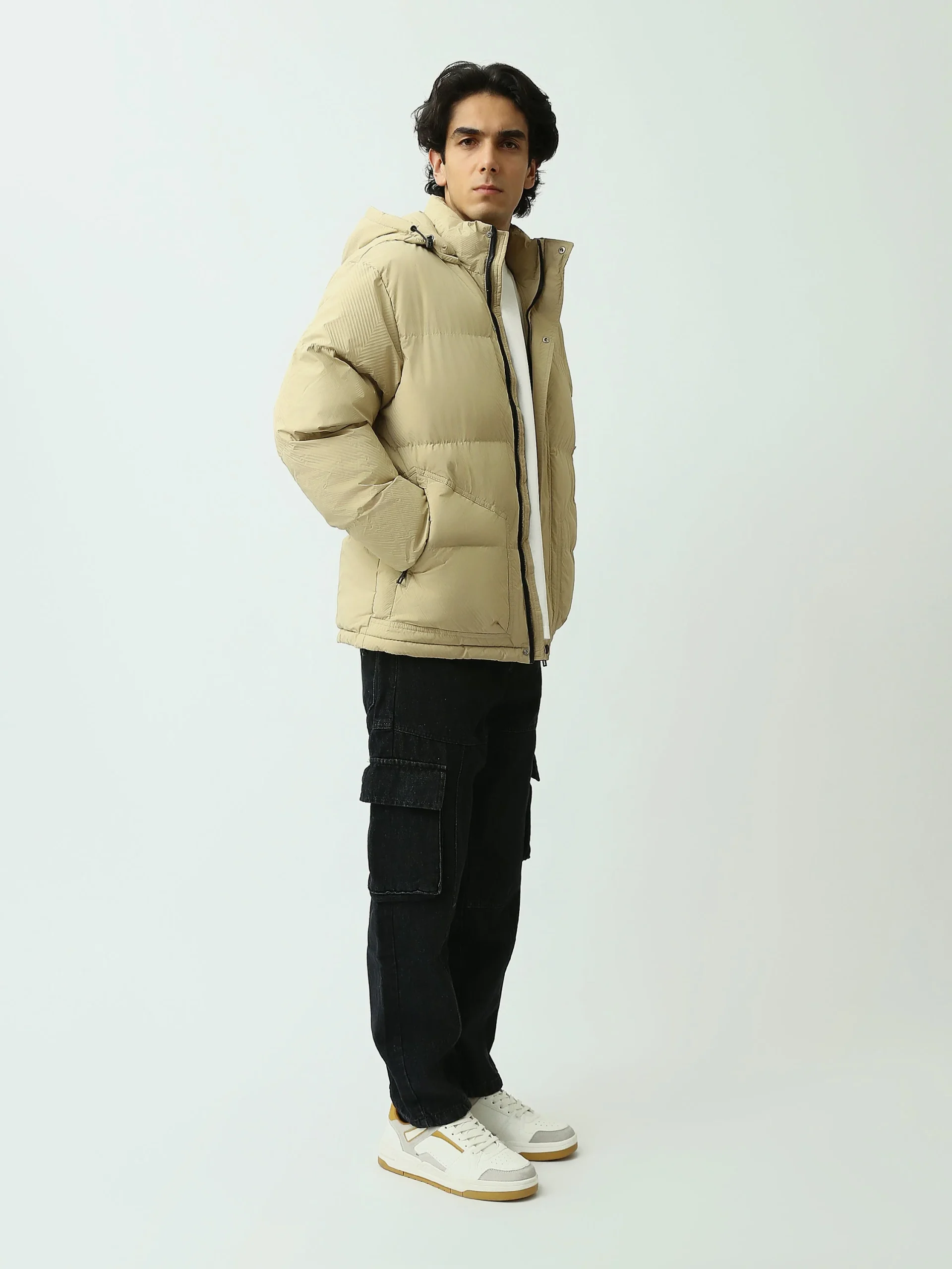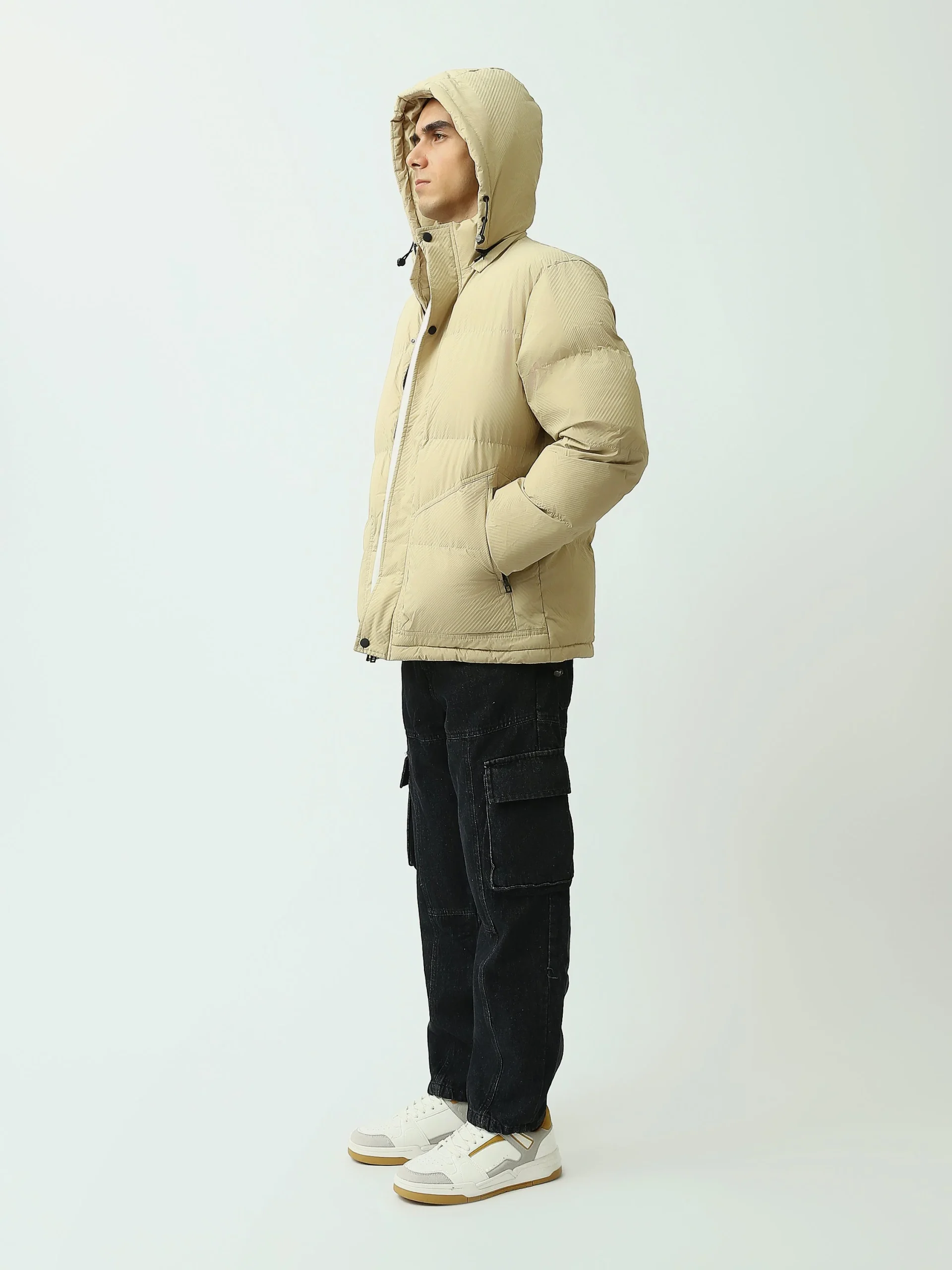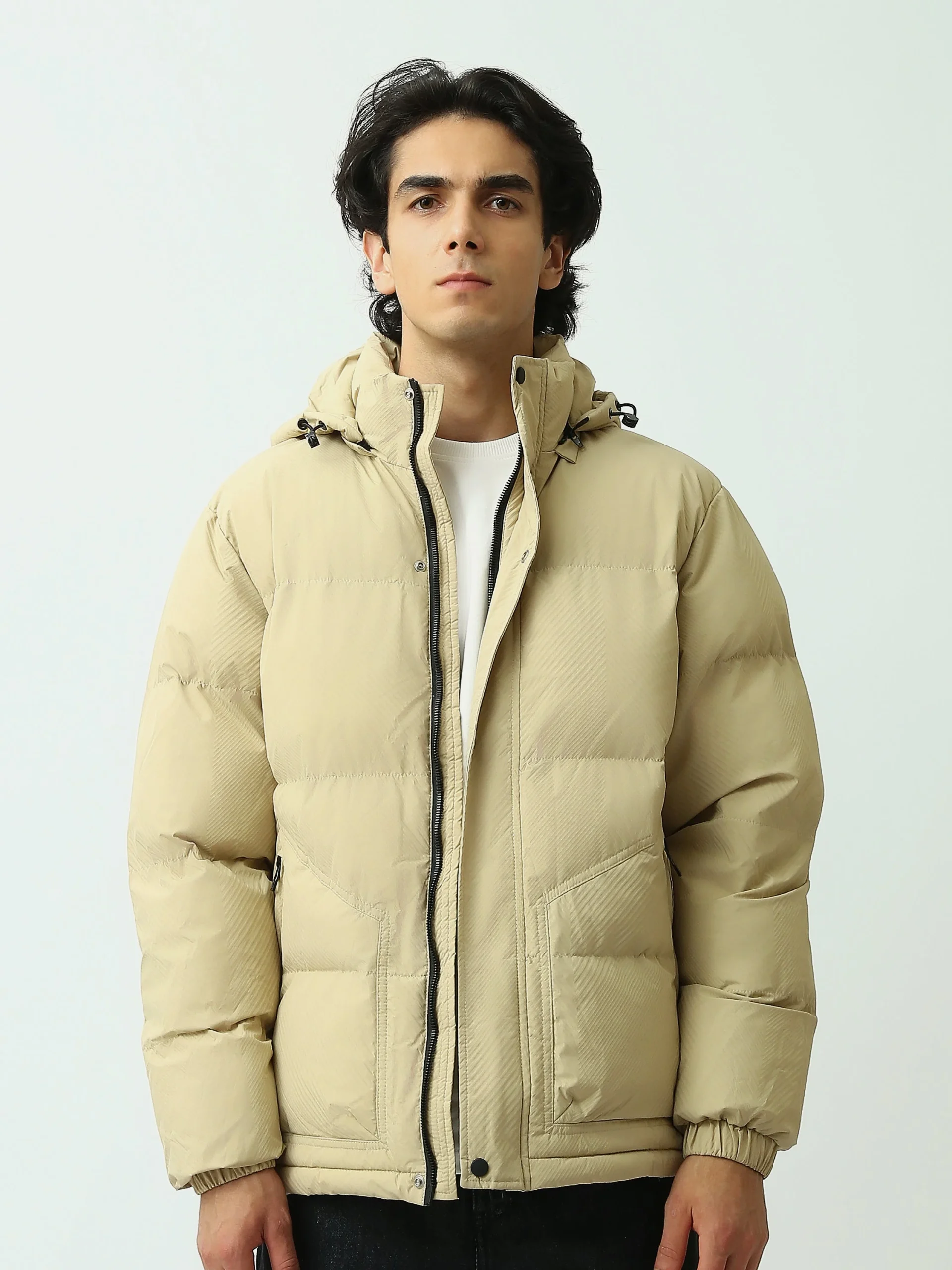 Veste à capuche beige pour homme – Style décontracté avec fermeture éclair – JAC25WWBP28009TM1