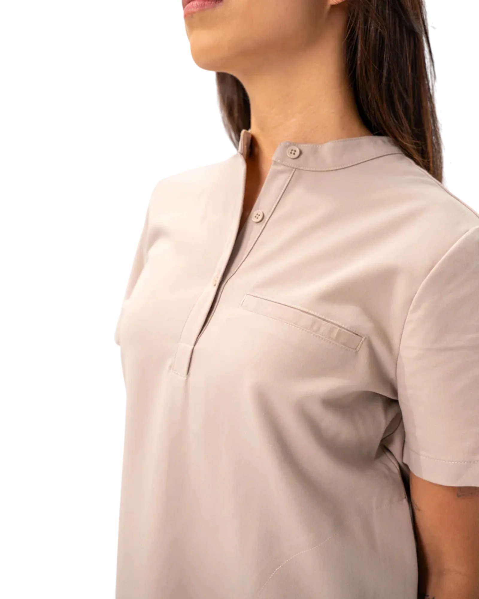 Alliez style et confort avec ce haut médical doté de 3 poches pratiques et d’un col mandarin boutonné. Son tissu doux et fonctionnel vous accompagne toute la journée.