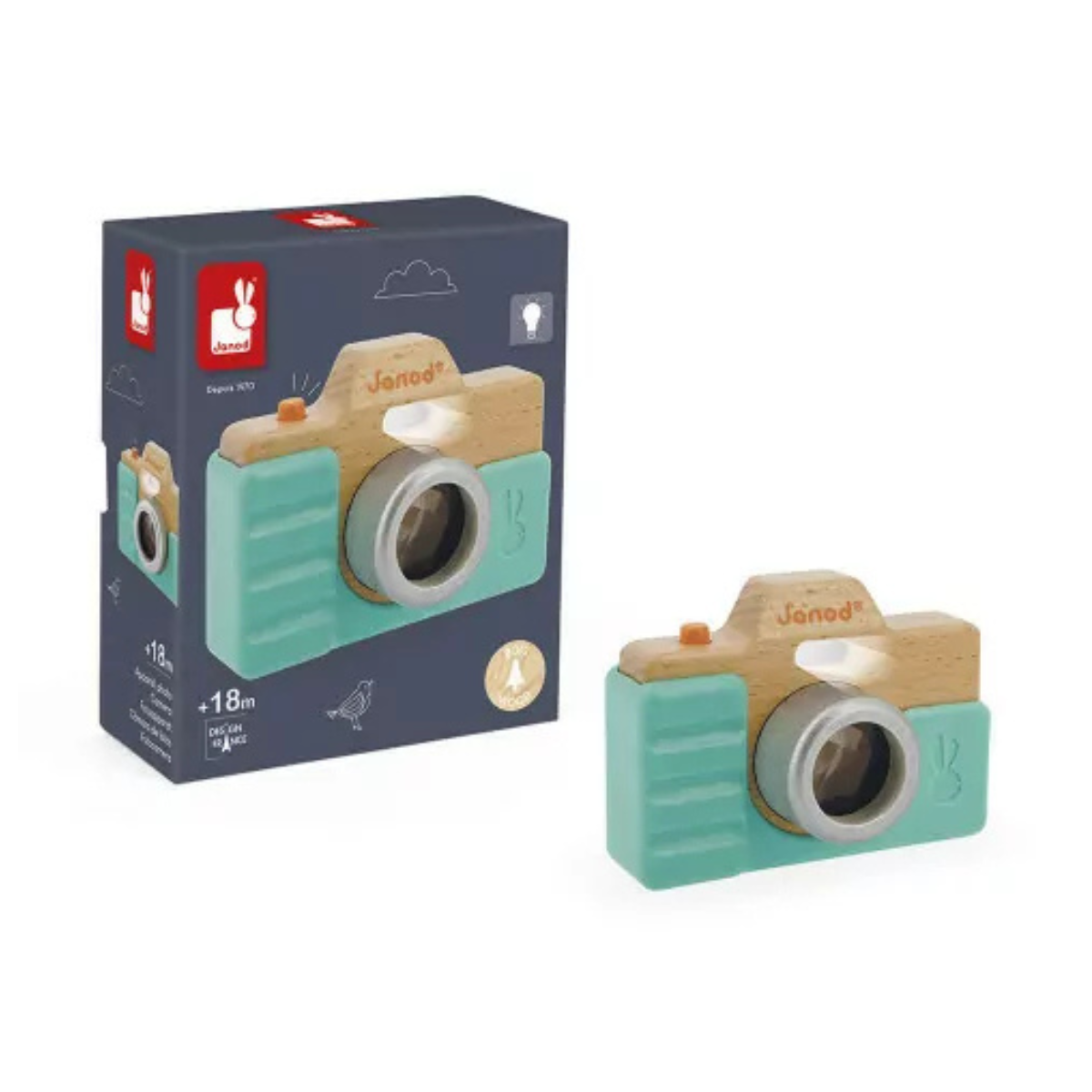 Cet adorable appareil photo jouet en bois et silicone est parfait pour les enfants dès 18 mois ! Son son de déclencheur, son vrai flash et son viseur kaléidoscope éveillent les sens et stimulent l’imagination. Grâce à sa coque en silicone turquoise, il est facile à tenir et bien protégé. Les tout-petits adorent imiter les grands et prendre la pose devient encore plus drôle quand c’est eux qui sont derrière l’objectif ! Un jouet d’imitation idéal pour développer motricité, curiosité et créativité, à emporter partout pour immortaliser leurs aventures imaginaires !