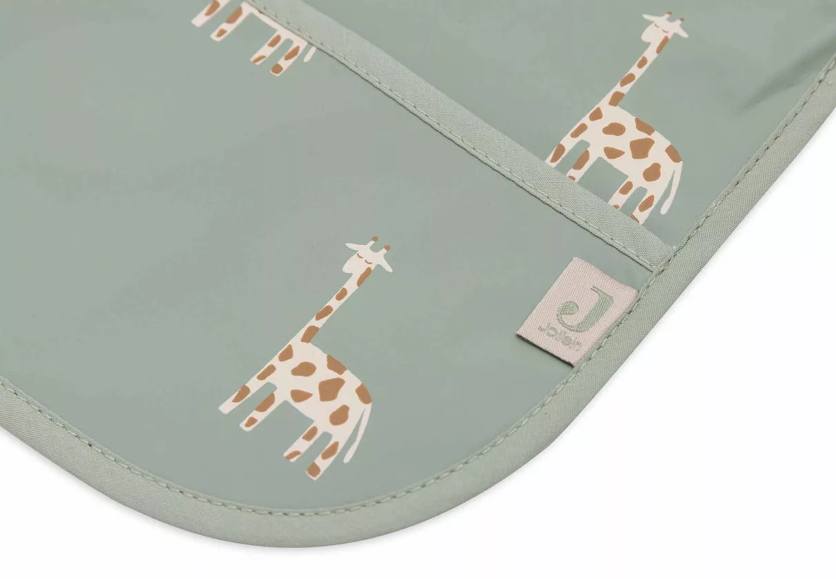 Ce bavoir à manches est idéal pour protéger les vêtements de votre enfant, que ce soit à l’heure des repas ou lors des activités créatives. Doté d’une double couche de tissu formant une gouttière astucieuse, il récupère les débris de nourriture pour un nettoyage simplifié. Pratique et polyvalent, il s’adapte à toutes les situations. Avec son thème Jungle Jambo, décoré de girafes sur un fond Ash Green, il allie fonctionnalité et style pour le bonheur des petits et des parents !