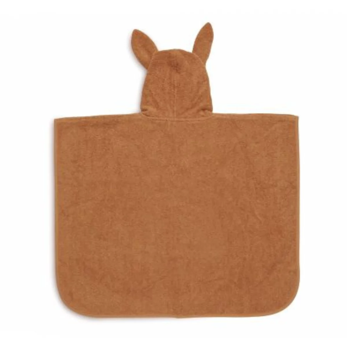 En plus de notre gamme de capes de bain et de peignoirs, nous proposons désormais ce poncho de bain pratique et mignon. En tissu éponge doux, pratique avec sa capuche et sa boucle de suspension et irrésistible avec ses adorables petites oreilles sur la capuche.