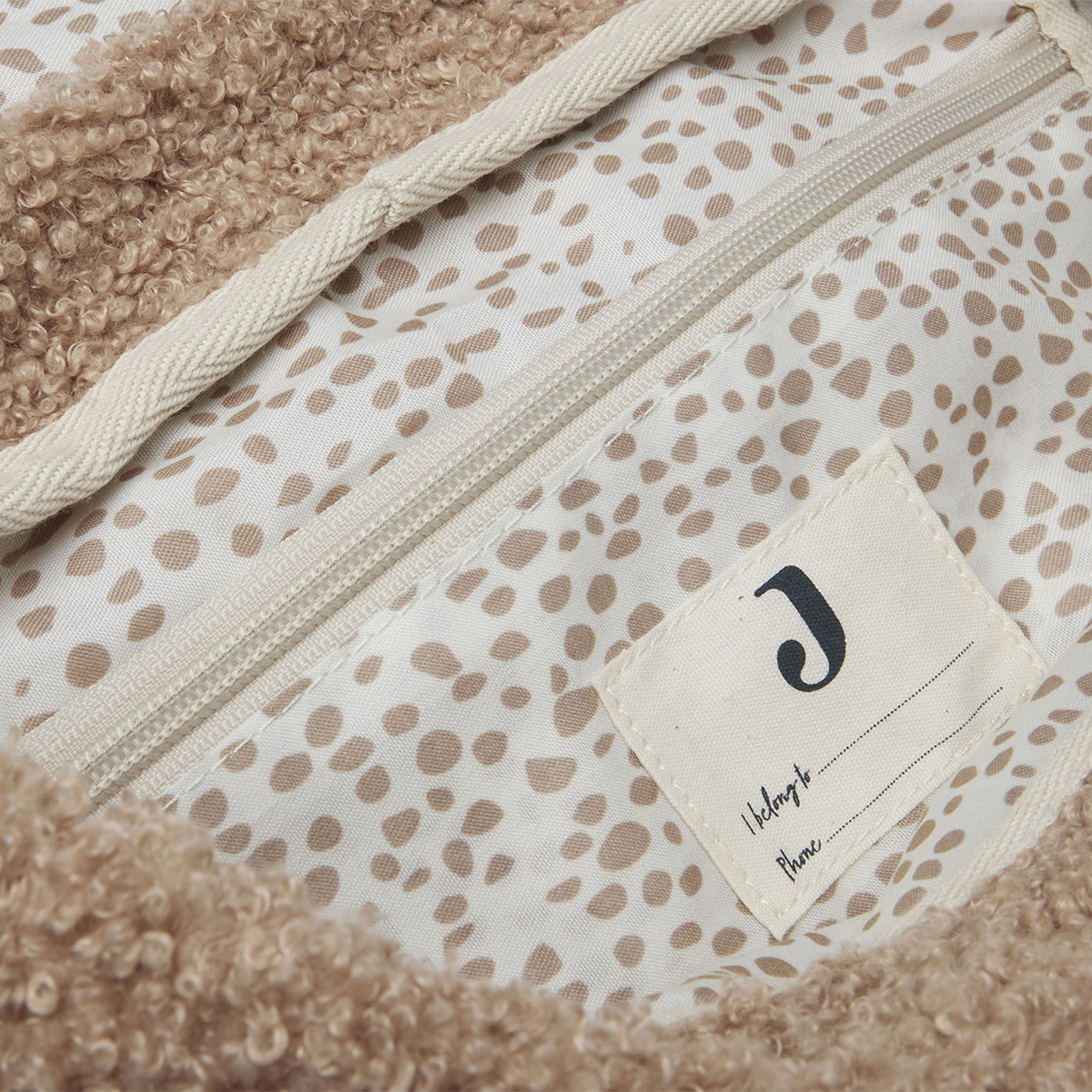Afin de ne pas égarer ce joli sac à dos, Jollein a cousu à l’intérieur une étiquette sur laquelle vous pourrez inscrire le nom de votre enfant.