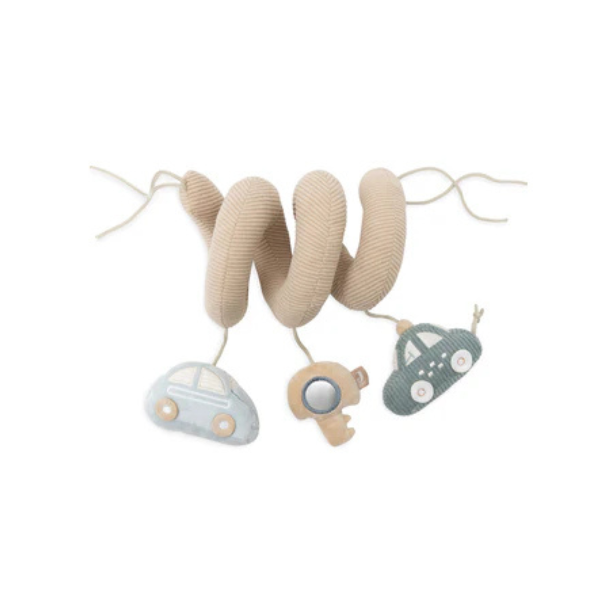 Composée de deux joyeuses petites voitures et d’une clé amusante, cette spirale combine plusieurs textures et éléments interactifs qui captivent bébé. Fabriquée dans un joli mélange de tissus côtelés aux couleurs tendances Biscuit, Cloud Blue et Sea Green, elle est aussi belle à regarder qu’agréable à manipuler.