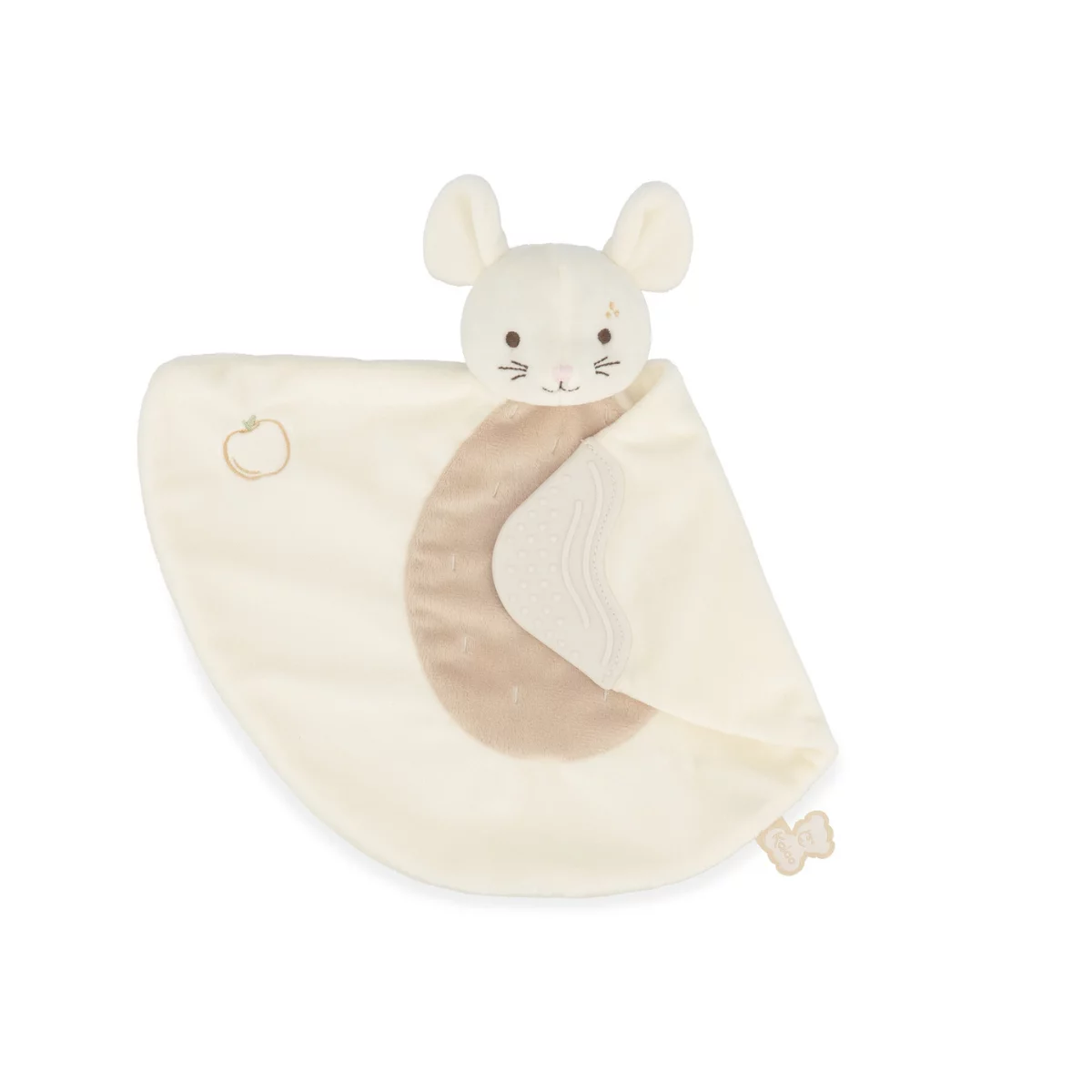 Découvrez ce charmant doudou de dentition en forme de souris, mesurant 23 cm, parfait pour accompagner votre bébé lors de ses premières poussées dentaires. Conçu avec une extrémité en silicone souple, il masse délicatement les gencives sensibles grâce à ses reliefs apaisants. La douceur du micro-velours de la souris en fait un compagnon quotidien idéal, apportant confort et réconfort à votre enfant. Une délicate broderie représentant une pomme, le fruit préféré de la souris, ajoute une touche d’élégance. Présenté dans une jolie boîte cadeau réutilisable, ce doudou, fabriqué avec au moins 77 % de matériaux recyclés, est lavable en machine…