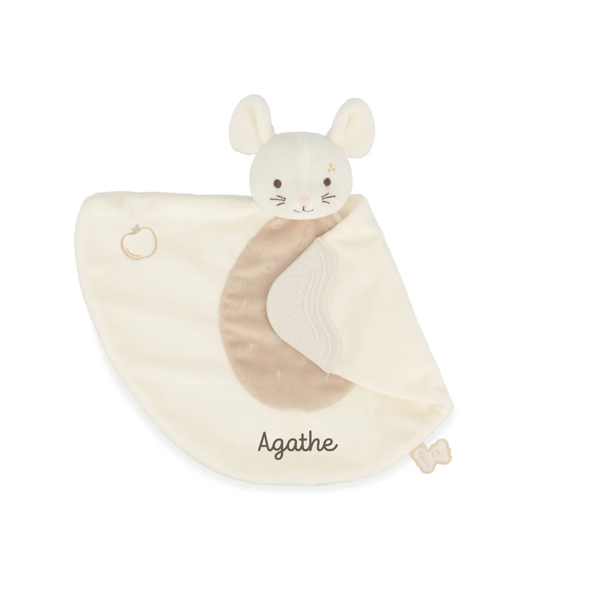 En plus de ses qualités apaisantes, ce doudou arbore une broderie élégante représentant le fruit préféré de la souris : la pomme. Ce détail raffiné ajoute une touche de charme à l’ensemble. Présenté dans une jolie boîte cadeau, ce doudou est idéal pour un présent personnalisé. Un petit encart sous le couvercle permet d’inscrire un message personnel, rendant chaque cadeau unique. De plus, le coffret est réutilisable, parfait pour ranger des petits objets ou conserver les premiers souvenirs de bébé.