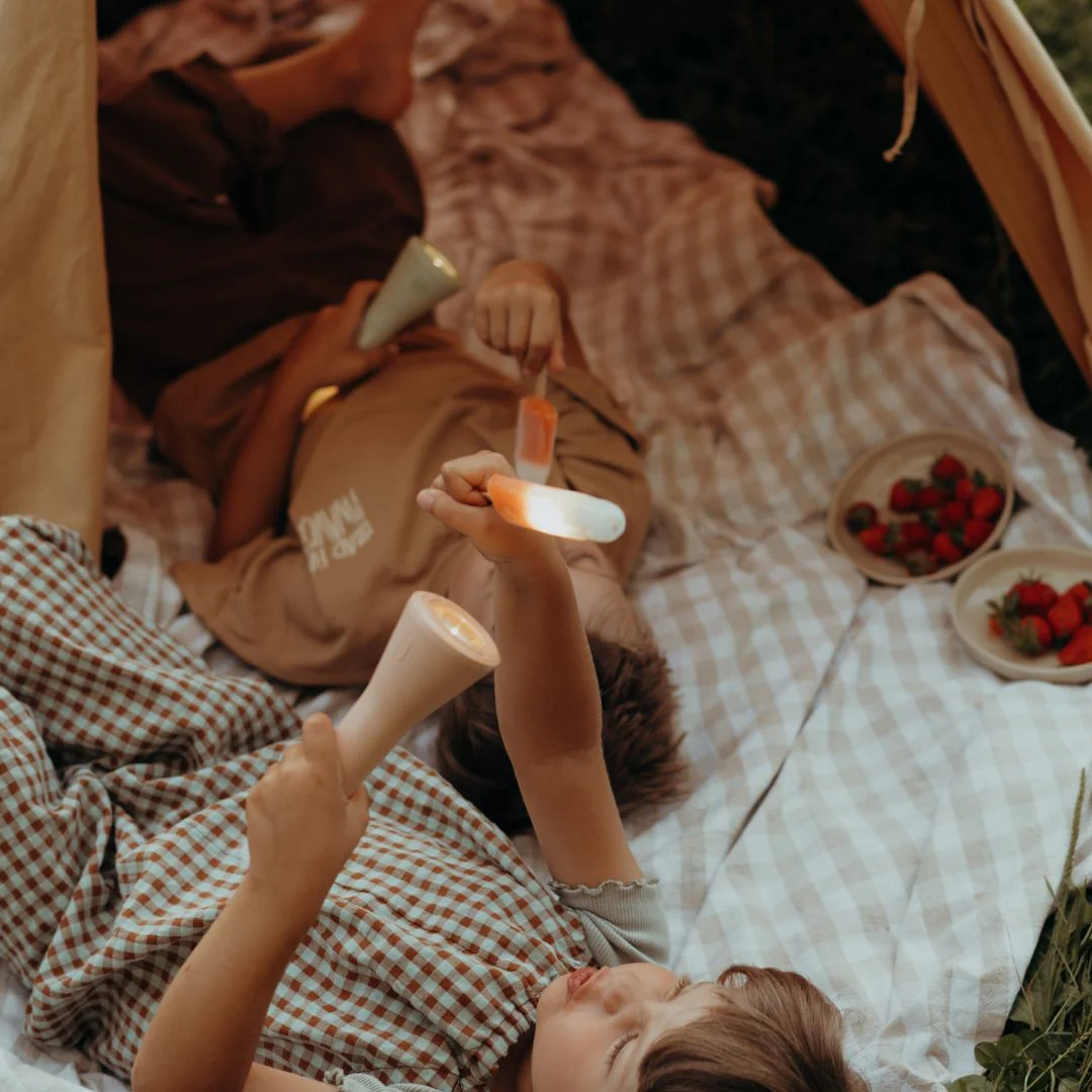 La KIDYFLASHLIGHT offre trois modes d’utilisation : en lampe torche classique, à poser pour une lumière d’ambiance ou en suspension pour illuminer une pièce entière. Avec ses trois niveaux d’intensité (100%, 60%, 20%), elle s’adapte à toutes les situations, de la lecture avant de dormir à la recherche d’un jouet sous le lit. Sa lumière chaude (3000°K) crée une atmosphère douce et réconfortante.