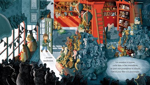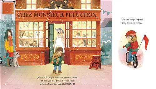 Jules, un petit garçon au cœur tendre, rêve de trouver l’ours en peluche parfait pour son anniversaire. Dans le magasin rempli d’ours de toutes sortes, il rencontre un vieux monsieur qui l’aide dans sa quête. Les étagères débordent d’ours ronds, petits, poilus, colorés et tachetés, mais aucun ne répond aux désirs de Jules. Il cherche un compagnon courageux et sincère, un ours qui partage ses aventures et ses câlins. Malgré les nombreuses options, Jules sait qu’il trouvera l’ours fait pour lui, un ami inconditionnel qui embellira son univers de magie et d’amour.