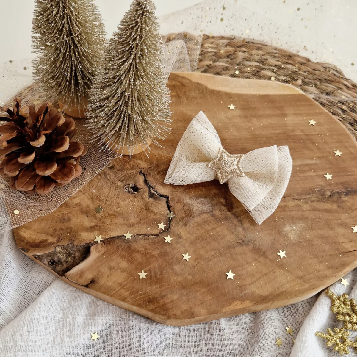 Les noeuds de maman – Grand noeud Féerie tulle pailleté doré