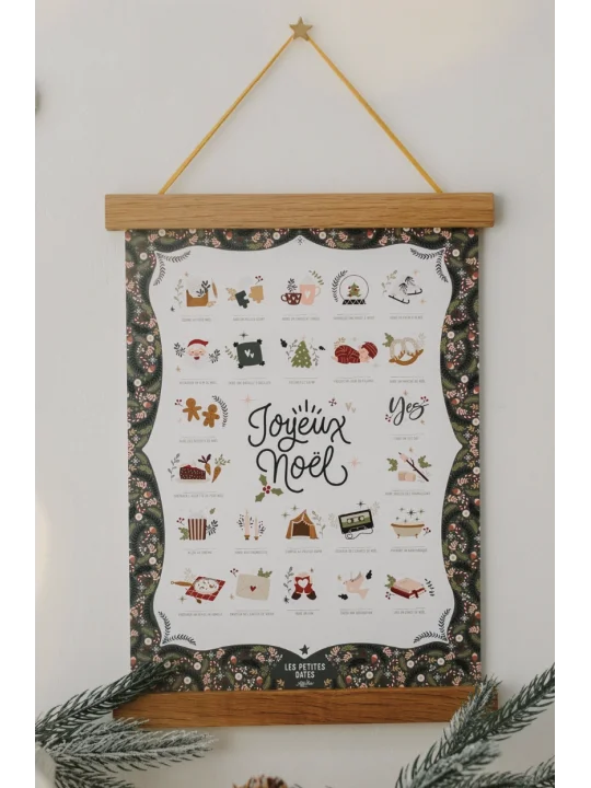Plongez dans la magie de Noël avec cette affiche unique inspirée du calendrier de l’Avent. Elle vous invite à vivre 24 moments précieux en famille : faire griller des chamallows, découvrir un marché de Noël, dormir tous ensemble dans le salon, fabriquer une décoration ou encore faire un don. Sous chaque illustration, vous pouvez dater l’activité réalisée, soit avec un stylo, soit avec un tampon dateur et de l’encre noire, pour conserver un souvenir authentique de chaque instant. Imprimée au format A4, cette affiche se glisse facilement dans votre décoration et apporte une touche festive à votre intérieur. Affiche vendue…