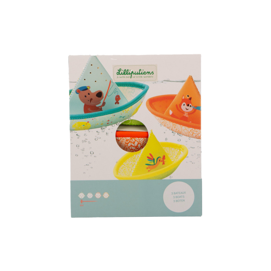 Prêts pour une petite régate à l’heure du bain ? Avec ce lot de trois bateaux flottants, l’heure du bain devient un vrai terrain d’aventure et de jeu pour les bébés dès 6 mois. Chaque voilier est accompagné d’un compagnon charmant : César l’ours, Alice la renarde et un martin-pêcheur, chacun embarqué sur son bateau pour vivre des histoires passionnantes.