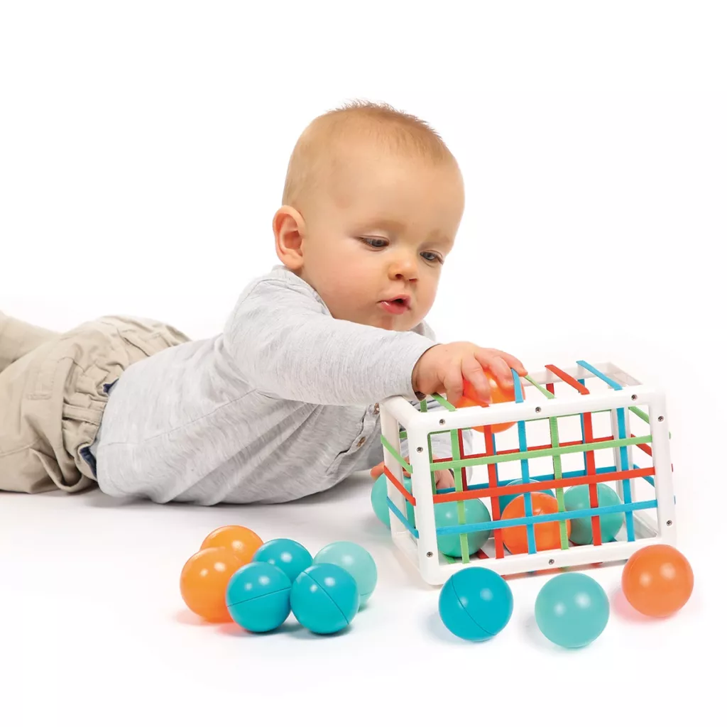 Ce cube n’est pas seulement amusant, il est également pédagogique. En essayant de faire sortir ou de déplacer les balles, bébé développe sa motricité fine, renforce sa préhension et apprend à coordonner ses gestes. Le jeu encourage également la logique et la réflexion, car chaque balle demande de l’adresse et de l’observation pour être attrapée. Chaque manipulation devient ainsi un moment d’apprentissage actif et stimulant, où bébé explore, expérimente et comprend progressivement les relations de cause à effet.