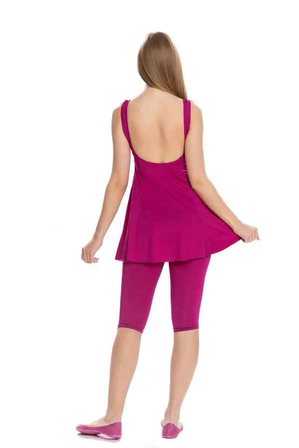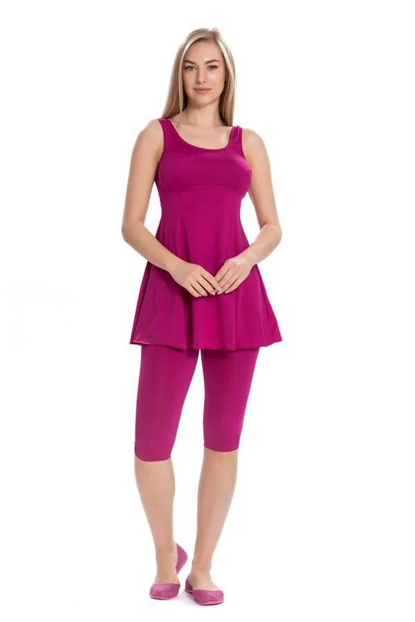 Maillot de bain avec jupe et leggings – Fuşya