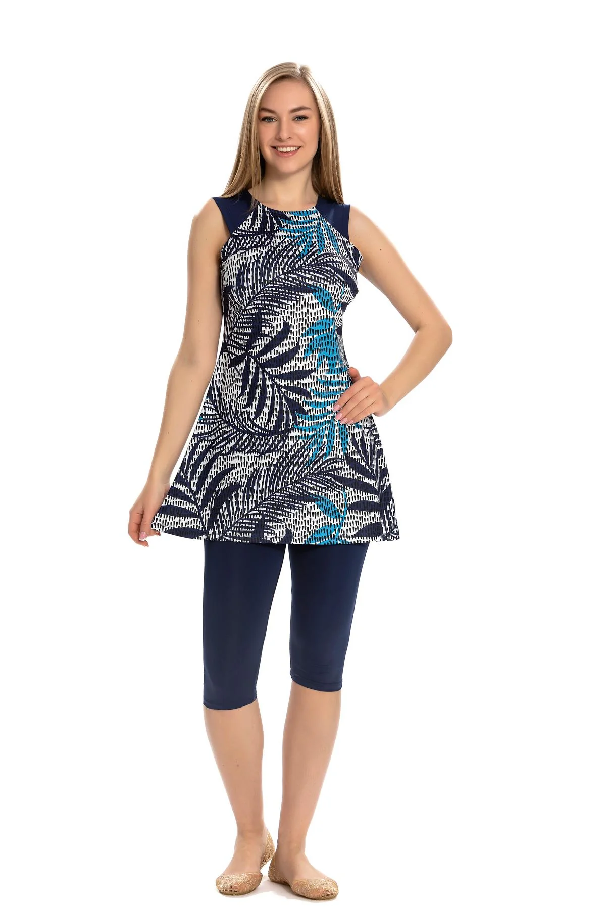 Coupe : Sans manches, avec legging et tunique assortie pour une couverture complète et confortable