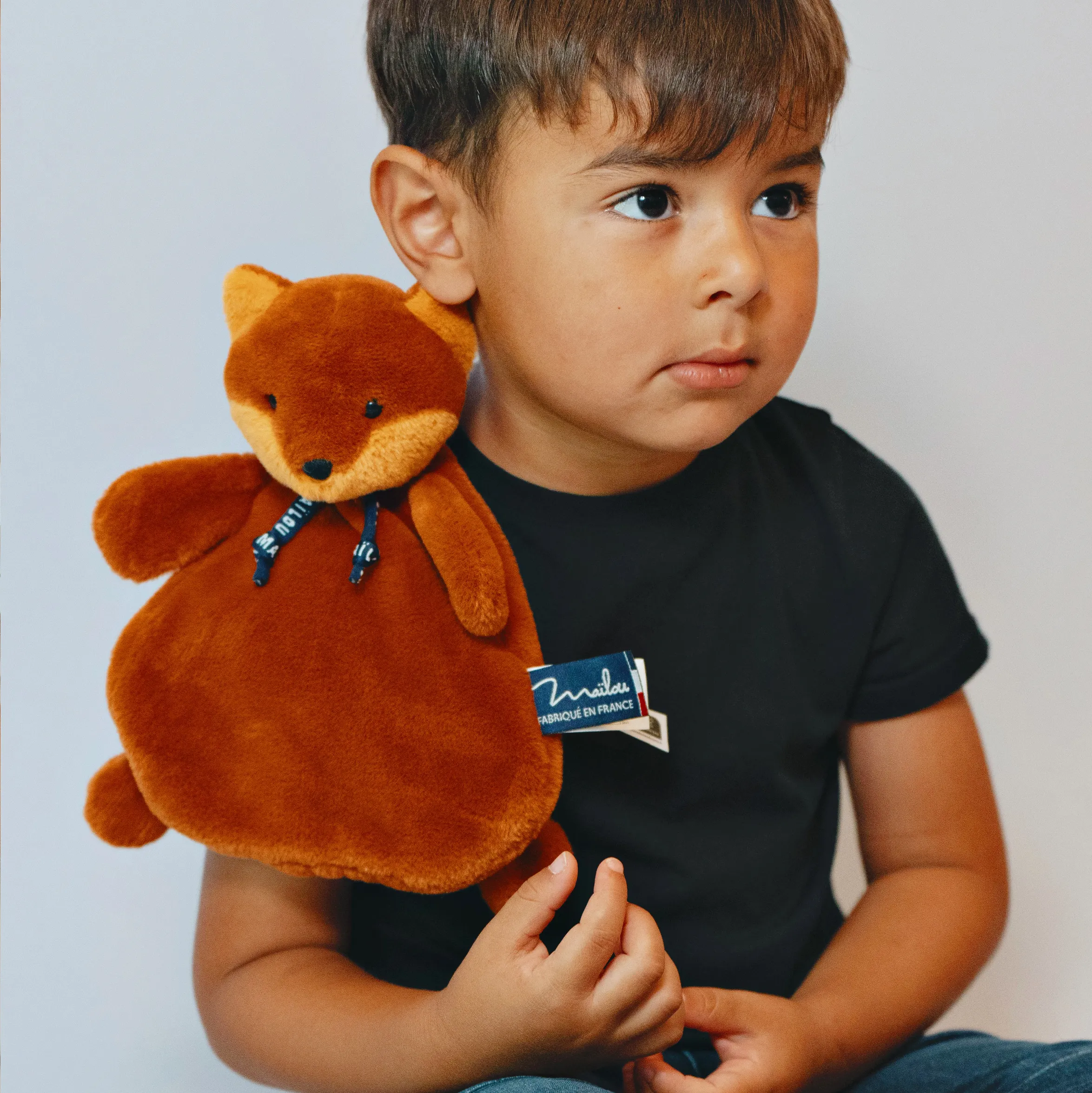 Chaque Doudou Plat Renard Roux est fabriqué à la main dans l’atelier breton de Maïlou Tradition, garantissant une qualité artisanale et un savoir-faire transmis avec passion. Les couturières prennent soin de chaque détail : les petites oreilles, le museau délicat et le ruban bleu marine brodé Maïlou confèrent à ce doudou une élégance discrète et une authenticité unique. Ces finitions soulignent le caractère artisanal de la création et en font une pièce exceptionnelle, loin de la production industrielle.