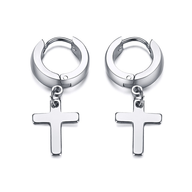 Voici une paire de mini créoles avec croix minimaliste, parfaite pour un look masculin et branché.  En acier inoxydable, ces mini créoles sont d’une excellente qualité…