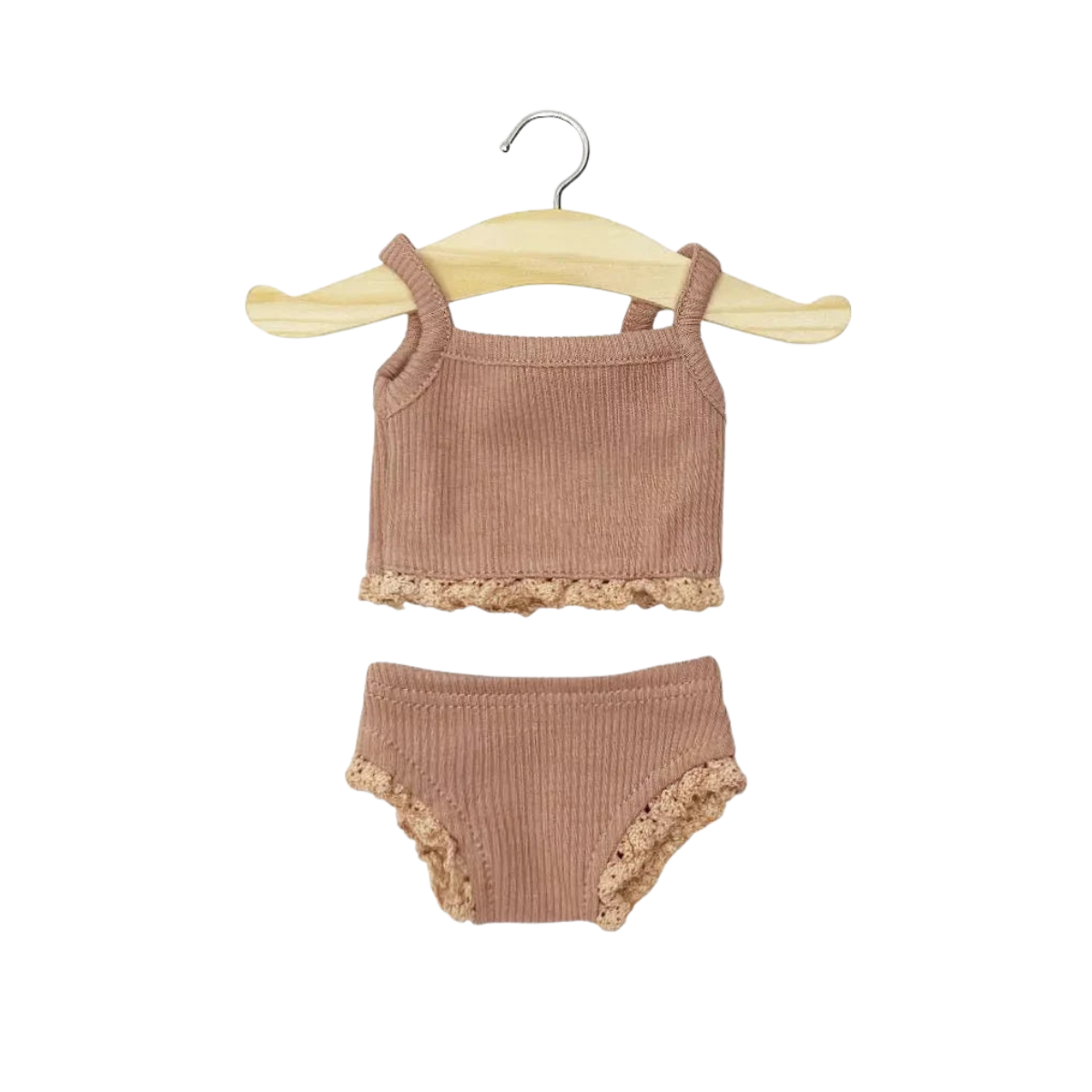 Dessous fille en maille côtelée et sa dentelle pour poupées Minikane Gordis 34 & 37cm.