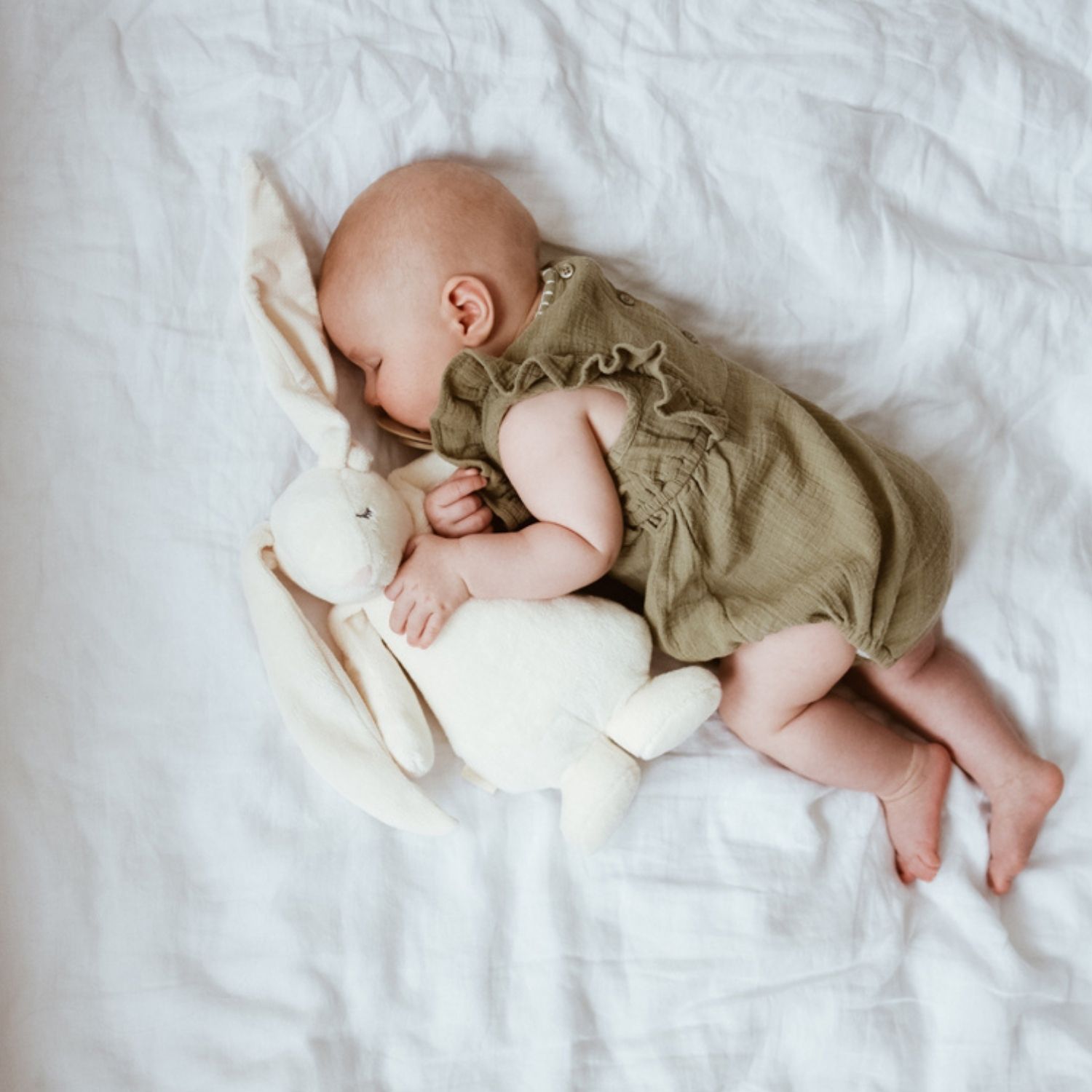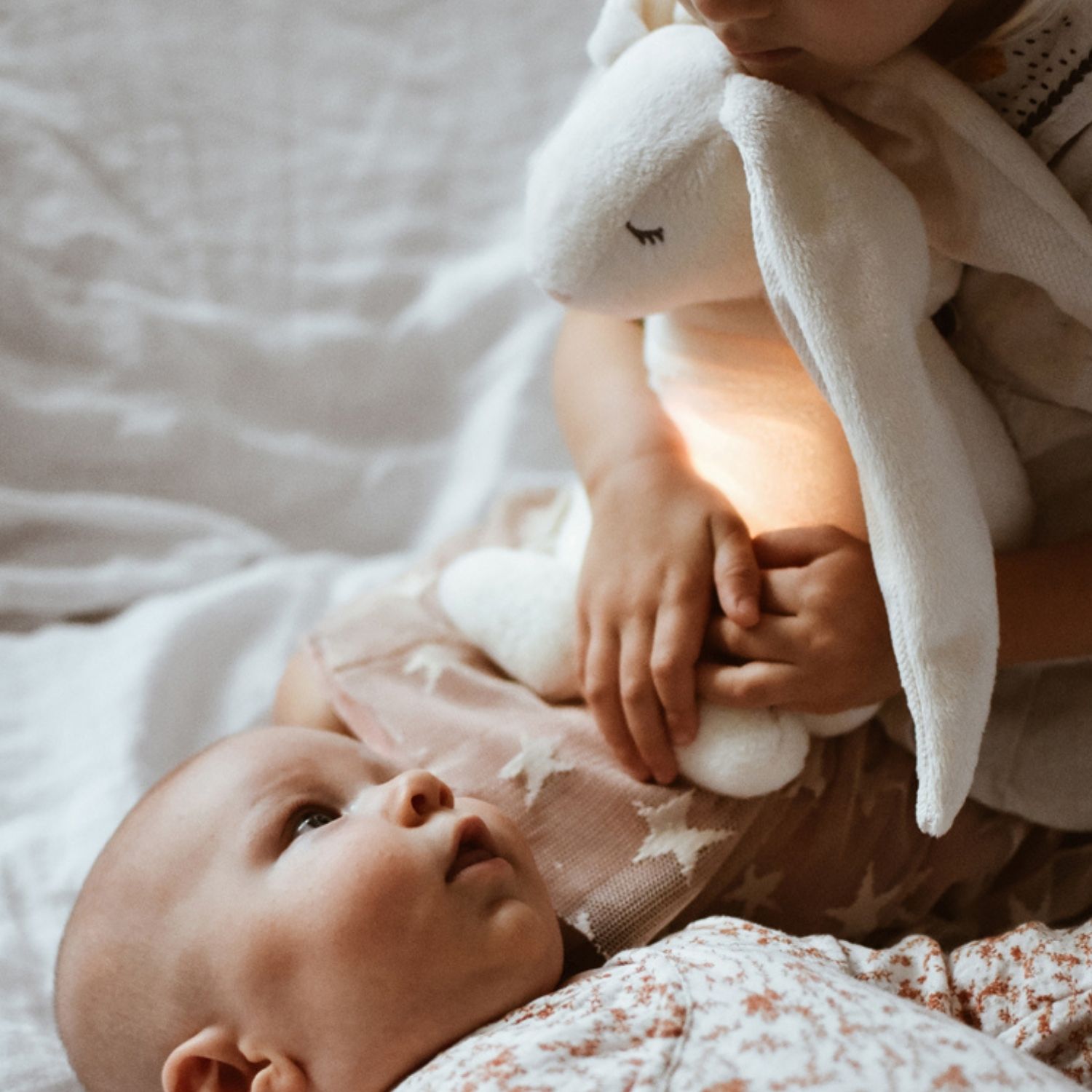 La peluche Moonie allie tendresse, technologie et sécurité pour accompagner bébé vers des nuits calmes et pleines de rêves.