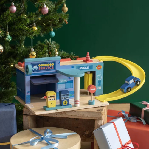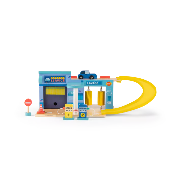 Cette station-service au look rétro et charmant est conçue pour captiver les enfants et stimuler leur créativité. Elle comprend une voiture miniature, une rampe pour les manœuvres, deux pompes à essence et un box de réparation. Avec ces éléments, les enfants peuvent imaginer toutes sortes de scénarios : accueillir les clients, dépanner un véhicule en panne, ou encore organiser une course de voitures dans le garage.
