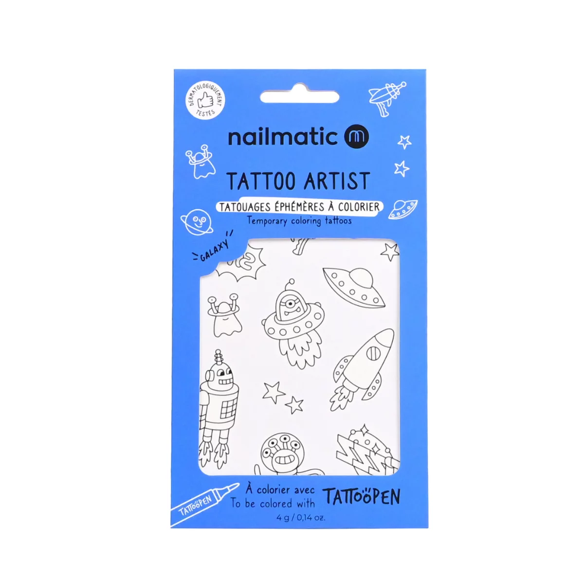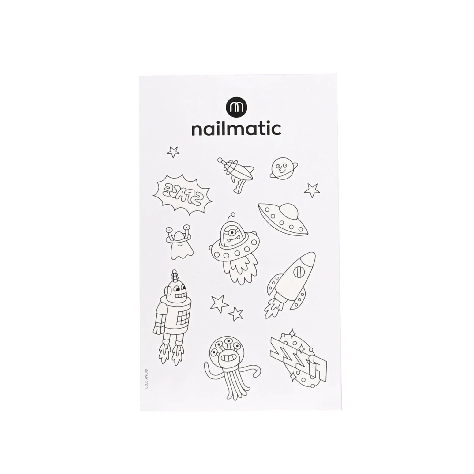 – 12 tatouages éphémères galaxy à découper et à colorier : fusée, alien, planète, étoile… Dans un esprit totalement space !