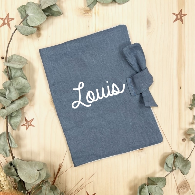 Un très joli carnet de santé personnalisé en lin doublé avec de la toile de coton. Il est personnalisable à souhait au prénom de votre enfant.