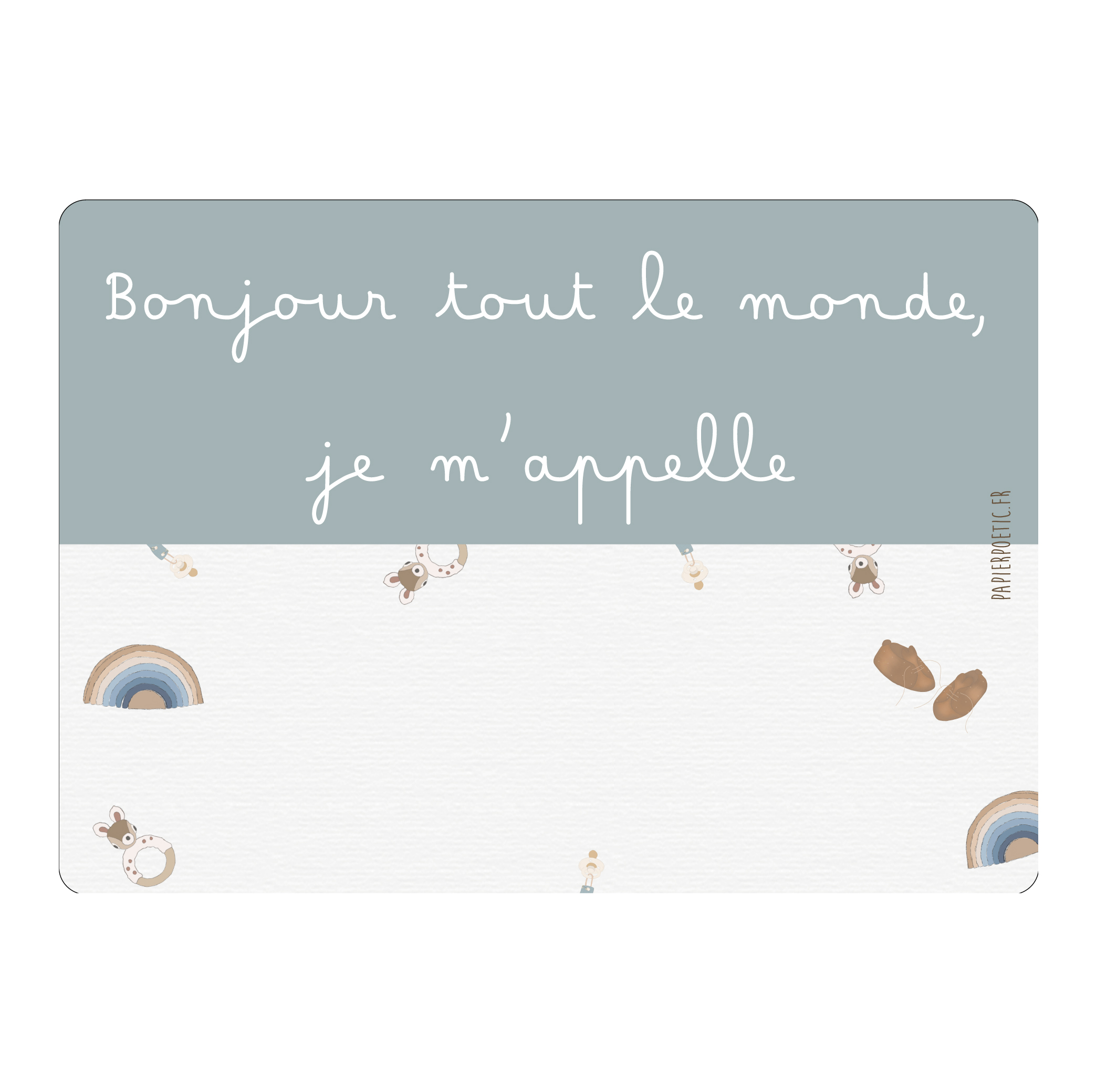 Papier Poetic – Carte « Bonjour tout le monde, je m’appelle … » arc en ciel