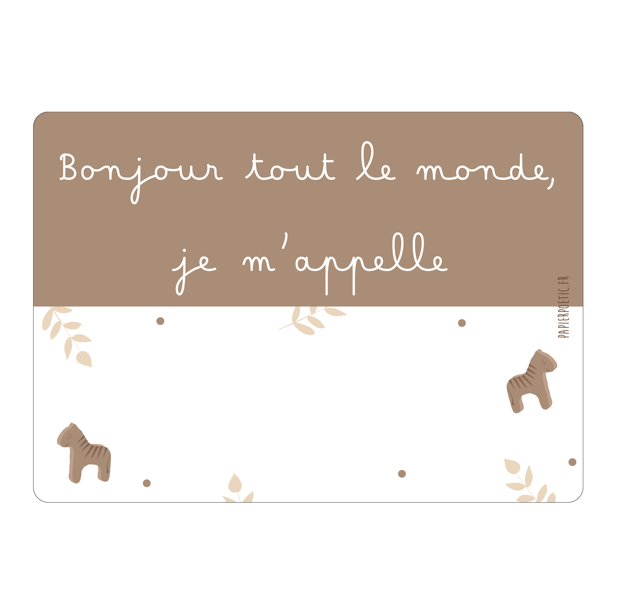 Papier Poetic – Carte « Bonjour tout le monde, je m’appelle … » dada