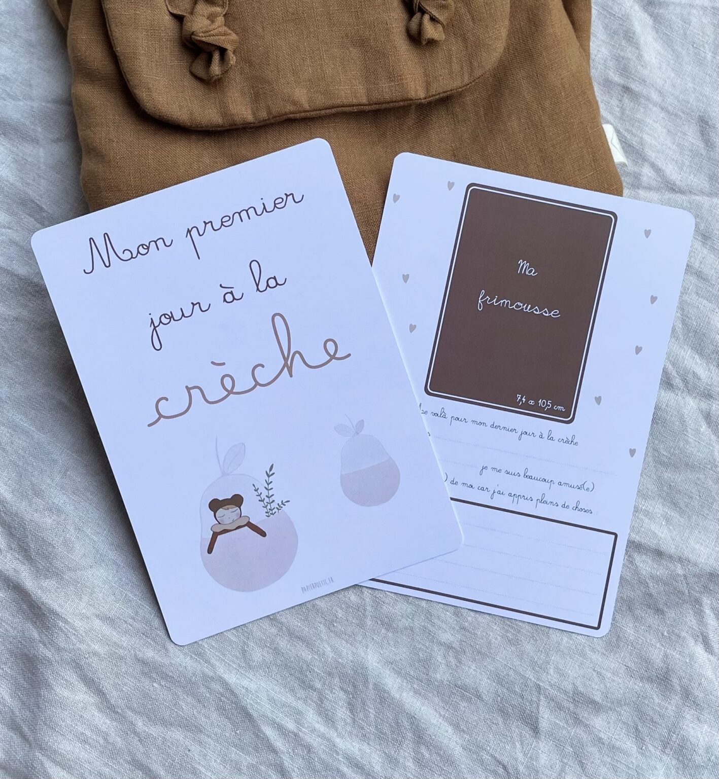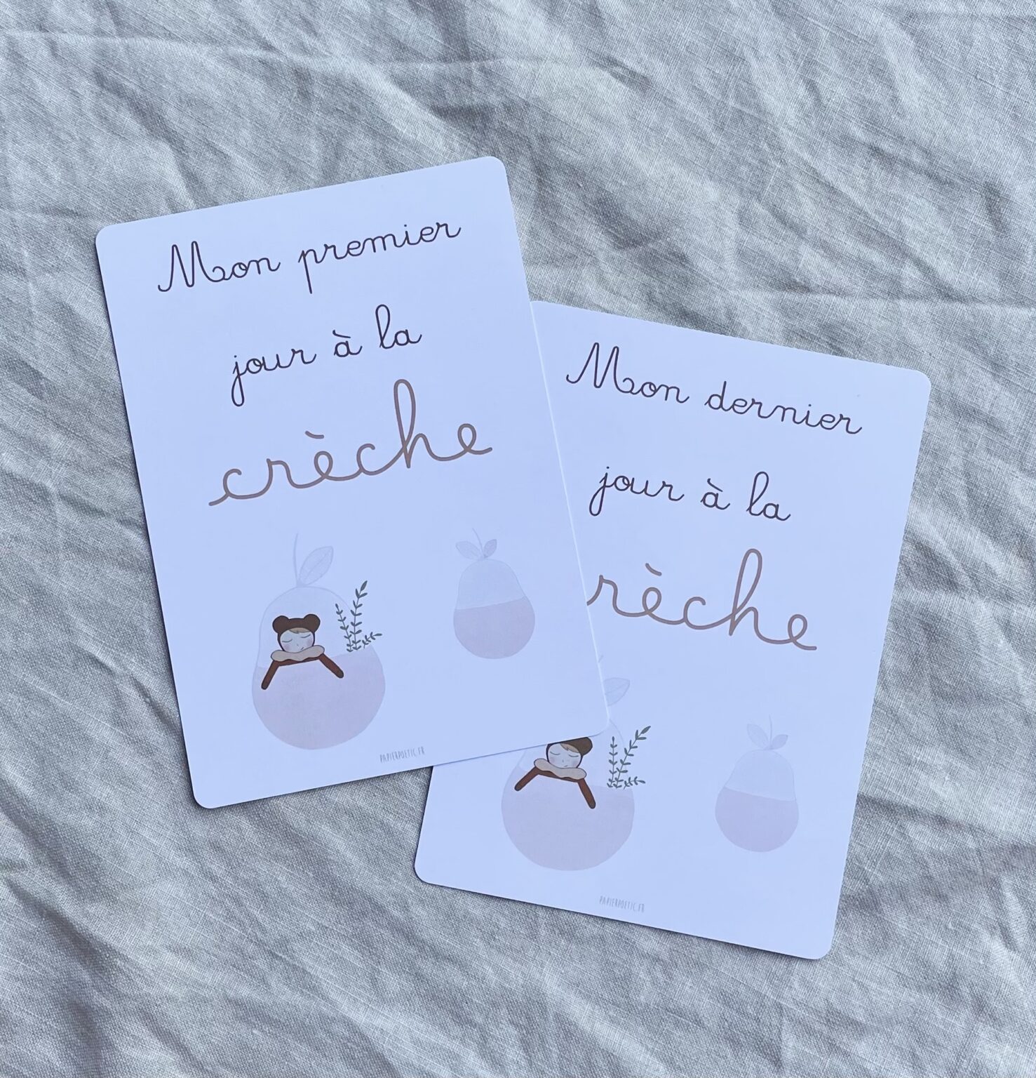 Papier Poetic – Duo de cartes souvenirs « Mon premier/dernier jour a la creche » doudou