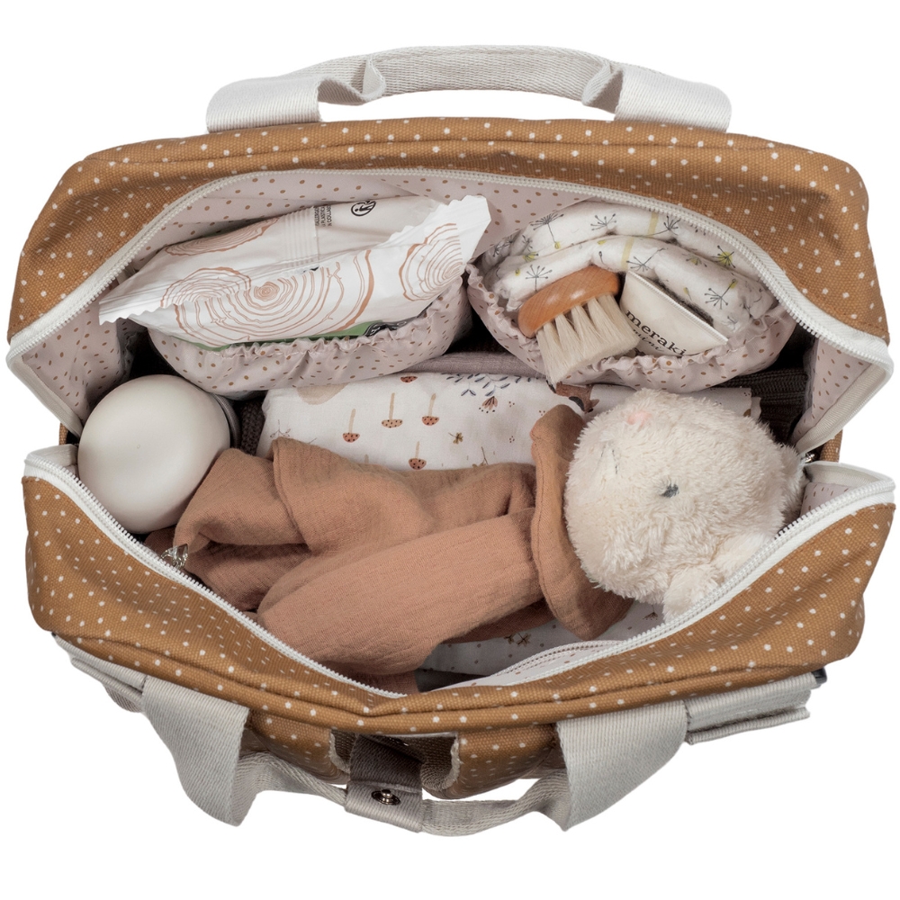 Conçu pour être à la fois léger et résistant, le Poppy Cannelle dispose d’une grande capacité et d’un agencement ingénieux. Ses multiples poches intérieures et extérieures permettent de garder chaque objet à portée de main : biberons, couverts, lingettes, vêtements de rechange ou bouteille d’eau. Une poche laminée spéciale permet d’isoler les vêtements mouillés ou humides, tandis qu’un matelas à langer assorti facilite les changements de bébé où que vous soyez.