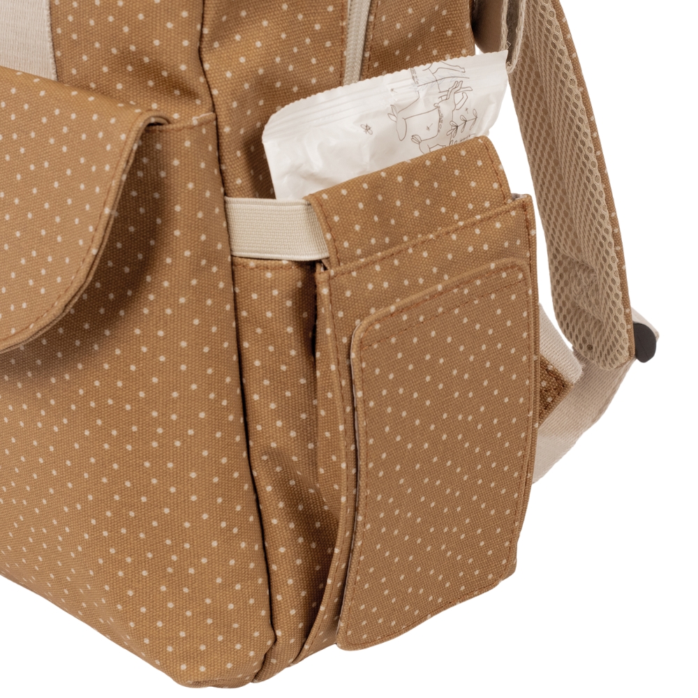 Pensé pour les parents modernes, le sac à dos à pois Poppy Cannelle allie fonctionnalité, grande qualité et style, transformant chaque promenade en un moment pratique et agréable. Ses détails soignés et sa conception intelligente en font un compagnon indispensable pour toutes les sorties avec bébé, alliant élégance, confort et organisation parfaite.