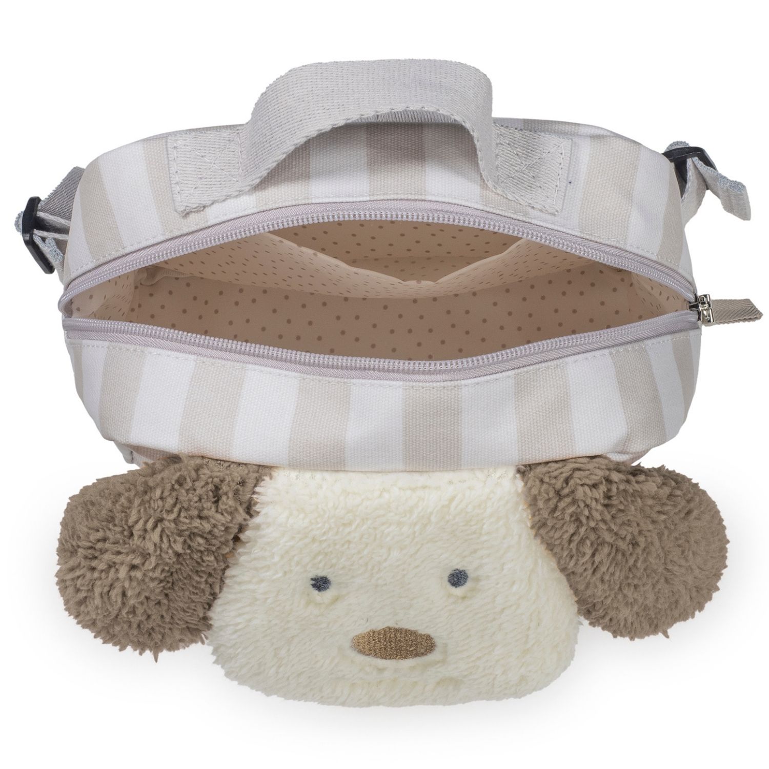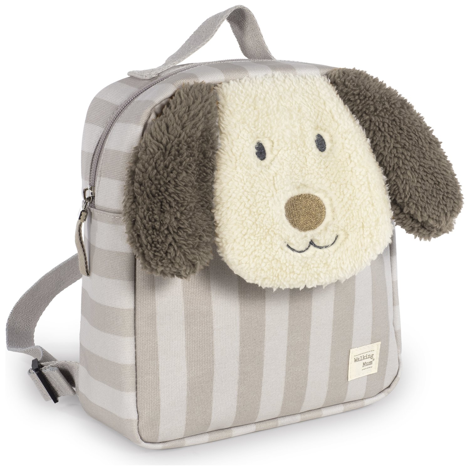 Craquez pour le sac à dos Chien Sintra Beige de Walking Mum, un compagnon adorable pour les premières sorties de votre enfant ! Avec sa bouille craquante, ses oreilles en relief et son tissu tout doux, il séduira immédiatement les tout-petits. Sa taille compacte est parfaite pour emporter un doudou, un goûter ou une petite bouteille, tandis que ses bretelles réglables et sa poignée supérieure offrent un port confortable et pratique. Fabriqué en coton plastifié, il est résistant, facile à nettoyer et conçu sans substances nocives. Idéal pour la crèche, la maternelle ou les balades du quotidien, ce sac à…
