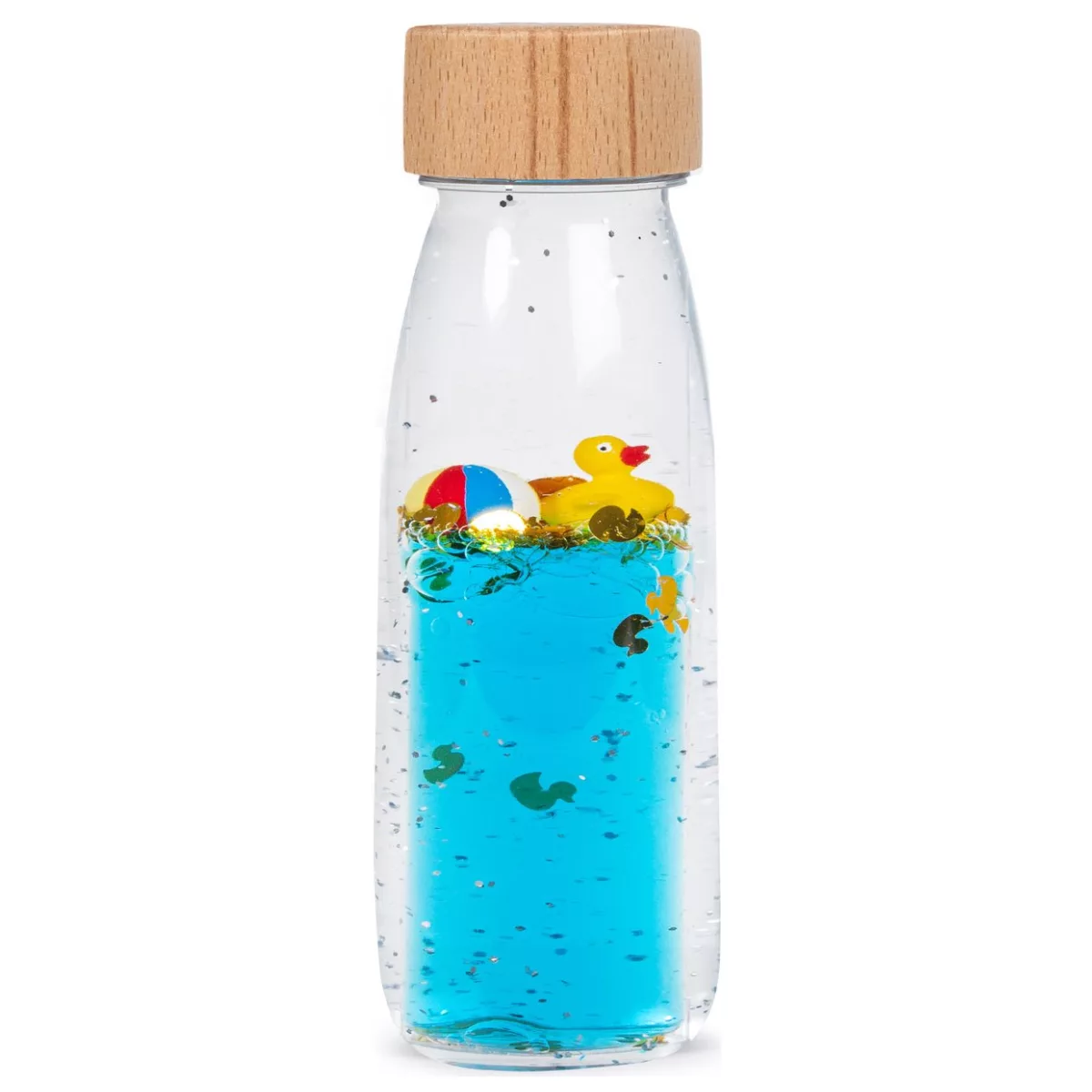 Votre enfant adorera secouer et faire rouler cette bouteille sensorielle pour voir les éléments à l’intérieur s’animer. Grâce à son liquide à effet flottant, chaque mouvement provoque une danse fluide et apaisante. Les objets se mettent à flotter et à se déplacer doucement, créant un spectacle visuel relaxant. Ce changement de densité du liquide rend le canard et le ballon légers, comme en apesanteur, plongeant les enfants dans un rêve diurne rempli de bulles et de douceur.