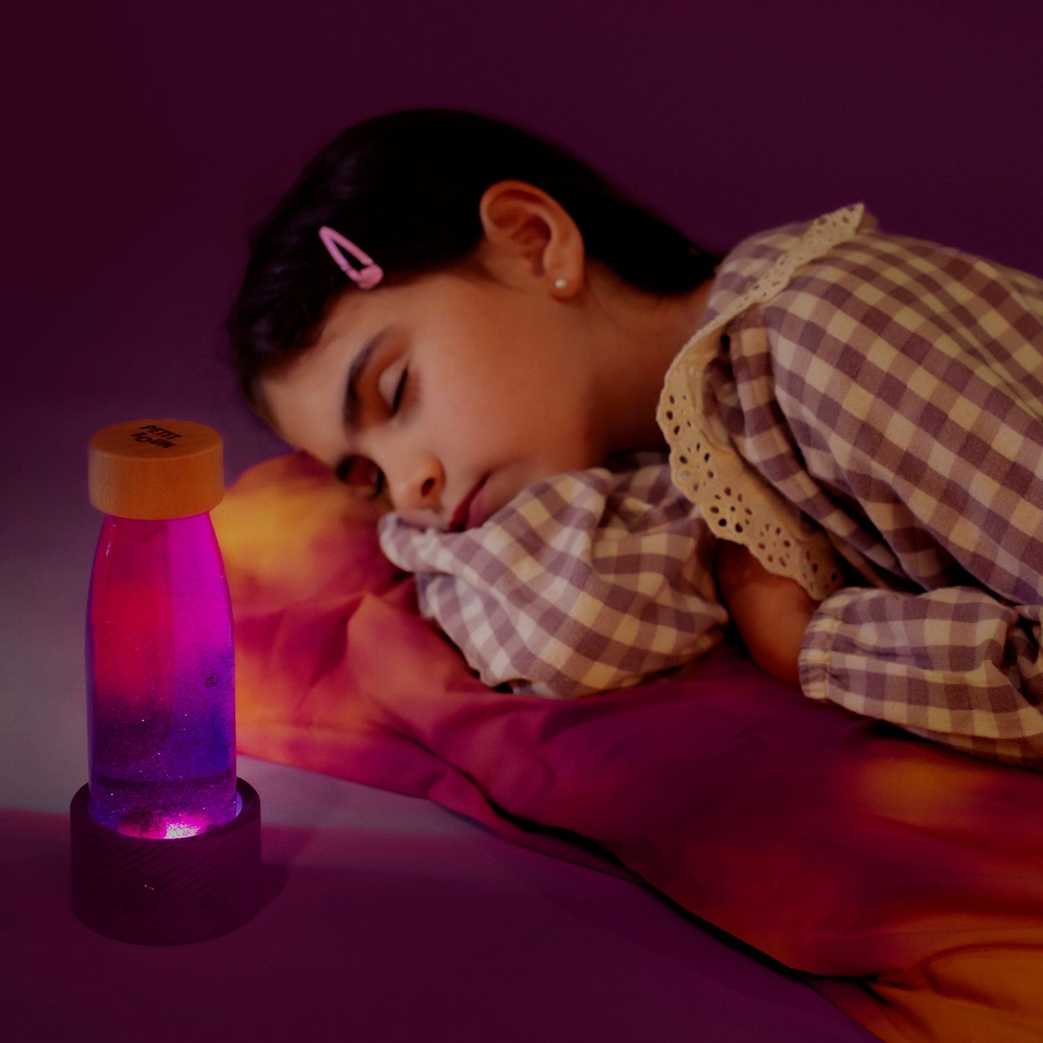 Parfaite pour accompagner les moments de calme, la Magic Lamp invite à la contemplation, à la rêverie et à l’apaisement. Elle stimule la curiosité, favorise l’observation et contribue au développement sensoriel en proposant un retour visuel fascinant. Un compagnon idéal pour compléter l’expérience offerte par les bouteilles sensorielles Petit Boum.
