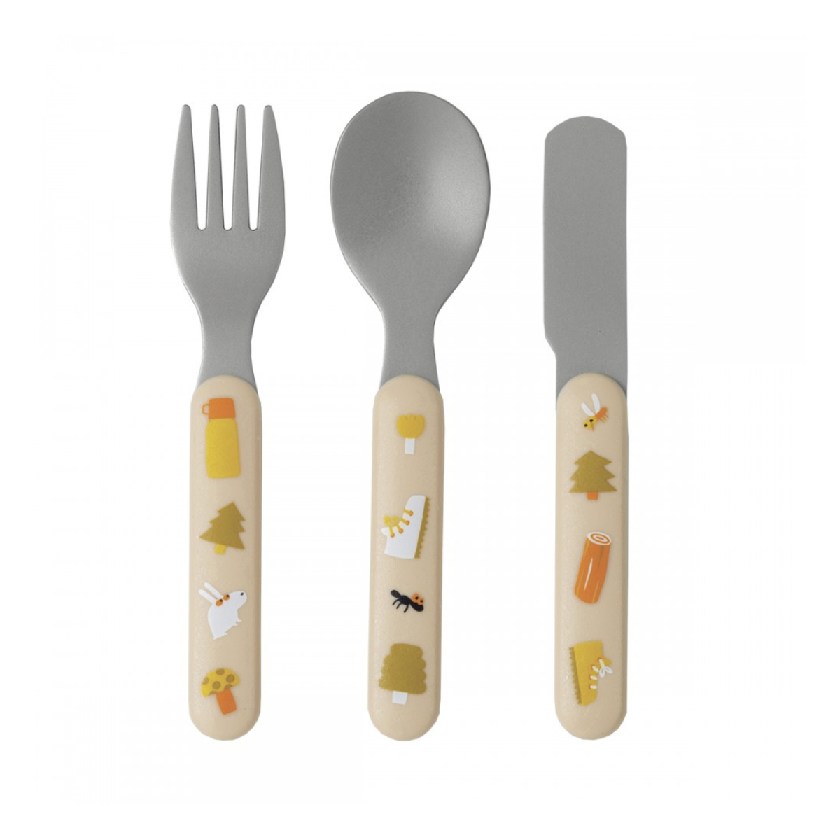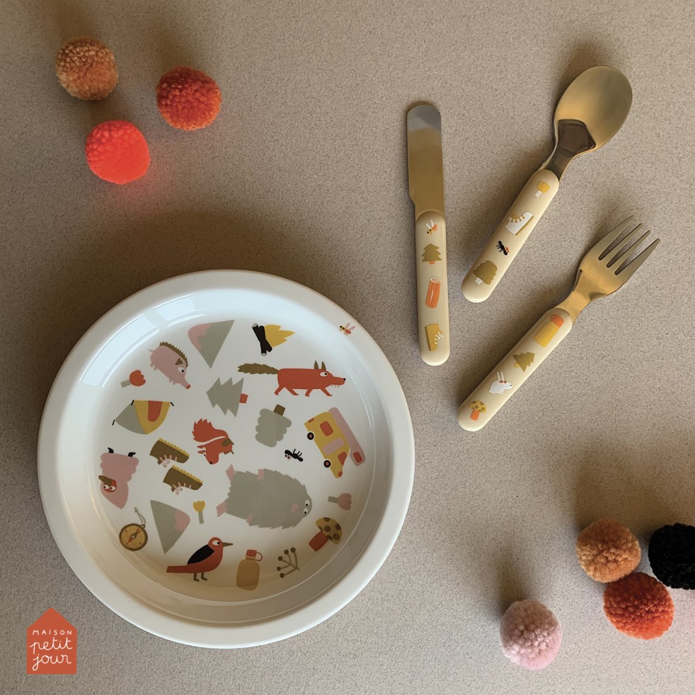Set de 3 couverts pour apprendre à manger tout seul. Il est composé d’une fourchette, d’un couteau et d’une cuillère en inox. Idéal pour les petites mains.