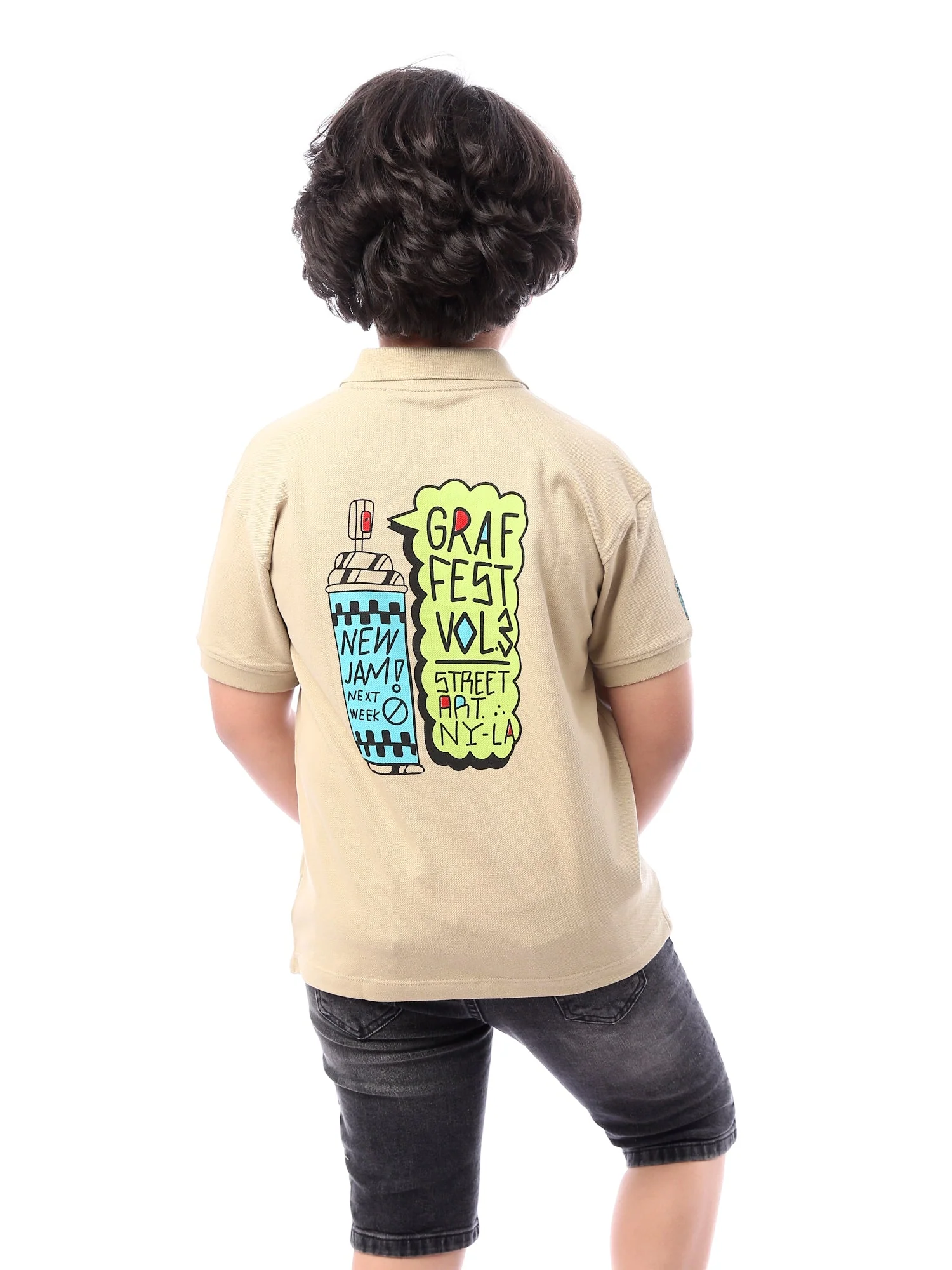 Polo enfant design graffiti couleur beige – POS24SPPR31276TB1