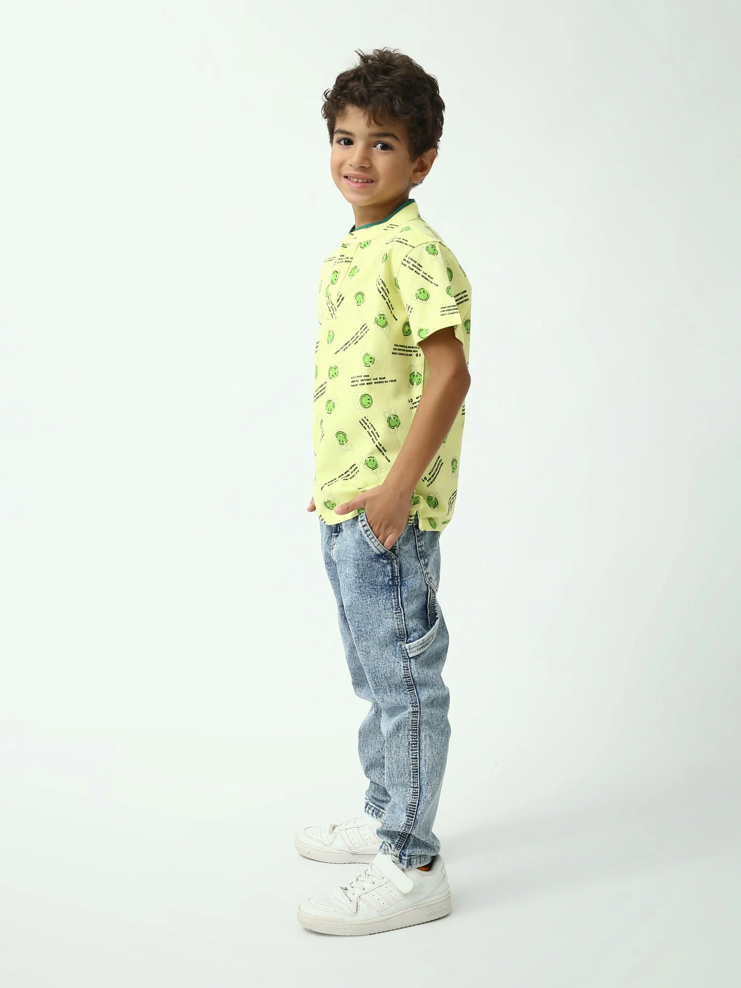 Avec ses motifs smiley et inscriptions imprimées sur toute la surface, ce modèle crée une allure jeune et dynamique. La coupe est confortable, pensée pour accompagner les mouvements, que ce soit à l’école, en sortie ou pendant les vacances.